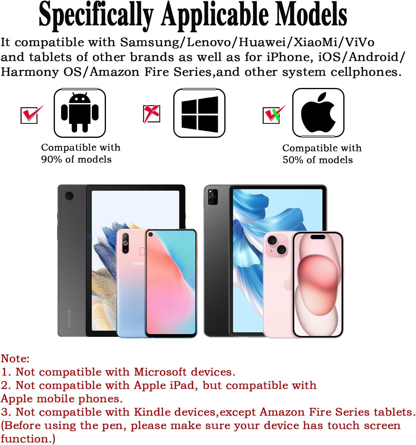- Compatible Devices : It is compatible for iOS/Android touchscreens, suitable for Samsung/Lenovo/Huawei/XiaoMi/ViVo and tablets of other brands as well as for iPhone, iOS/Android/Harmony OS/Amazon Fire Series,and other system cellphones. (Note: This stylist pens not compatible for iPad & Microsoft tablets and windows systems) It is compatible for iOS/Android touchscreens, suitable for Samsung/Lenovo/Huawei/XiaoMi/ViVo and tablets of other brands as well as for iPhone, iOS/Android/Harmony OS/Amazon Fire Series,and other system c… See more