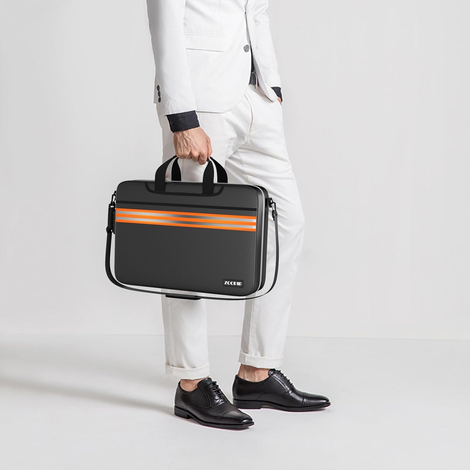 - 【Large File Folder】Suitable size: 16.1"×4.3"×12.6".Comfortable handle and shoulder strap,so that you travel and work on the way to more calm,chic and generous!Lock Folder Organizer comes with a three-digit combination lock.You can place any personal items without worrying that your important files will be viewed or that valuables such as jewelry will be lost.It's also very easy to set the new password and the details page has details on how to set a new password.(※ Old password: 000)