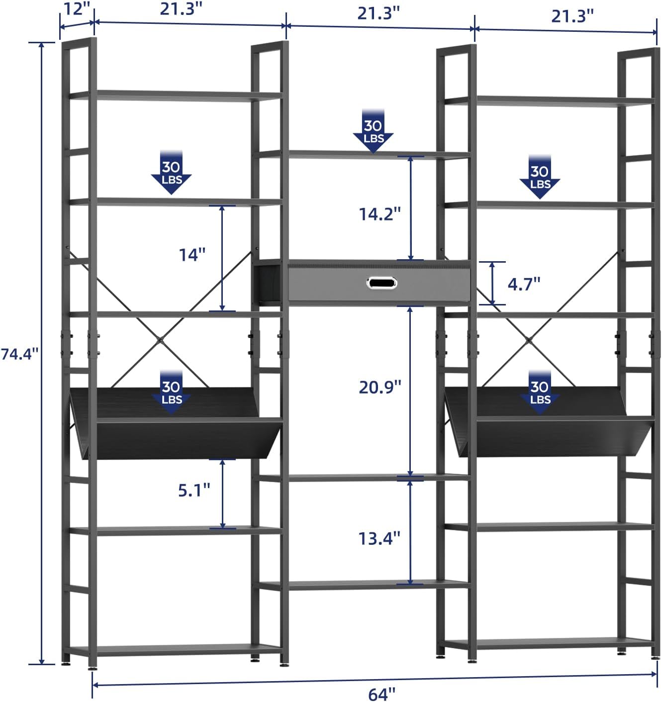- Product Dimensions : 12"D x 64"W x 74.4"H
