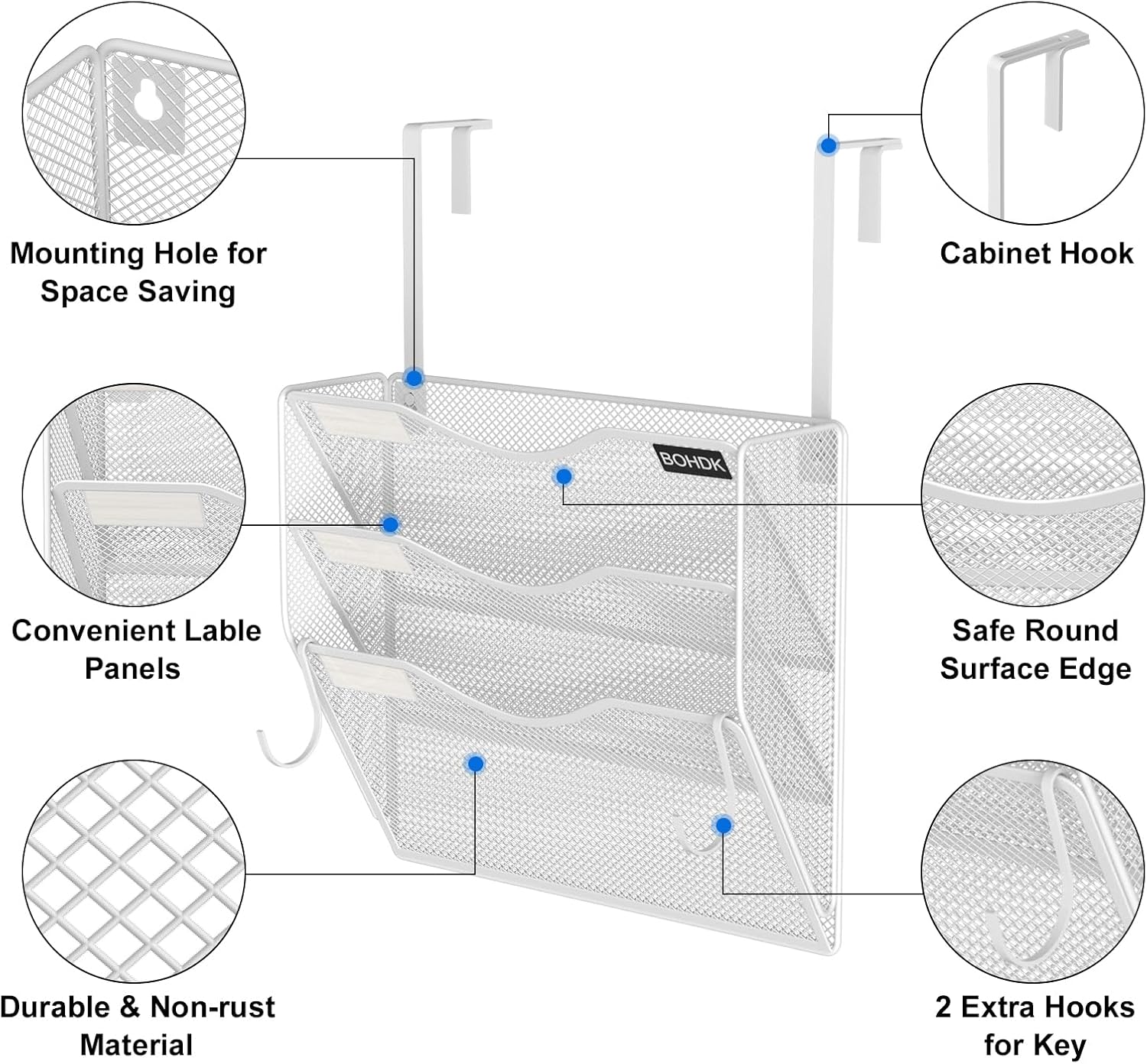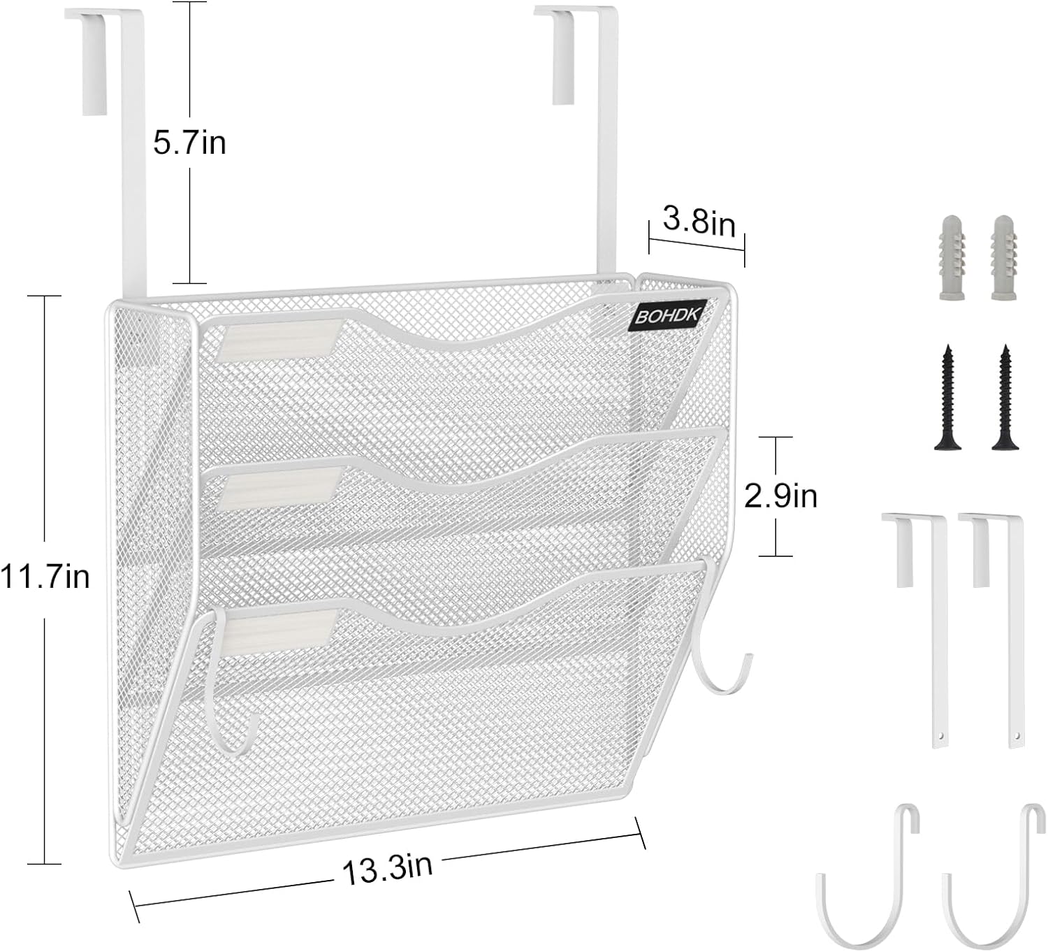 - 【Wall Mount/Door Hanging Organizer】No assembly needed. Equipped with mounting screws and door hooks, the file provides you more creative ways to use it. Not only can you utilize the vertical space anywhere, but also you can hang it on the cabinet door without mounting. Perfect for your bills, tablets, notebooks, portfolios, photos, letters, magazines and so on.