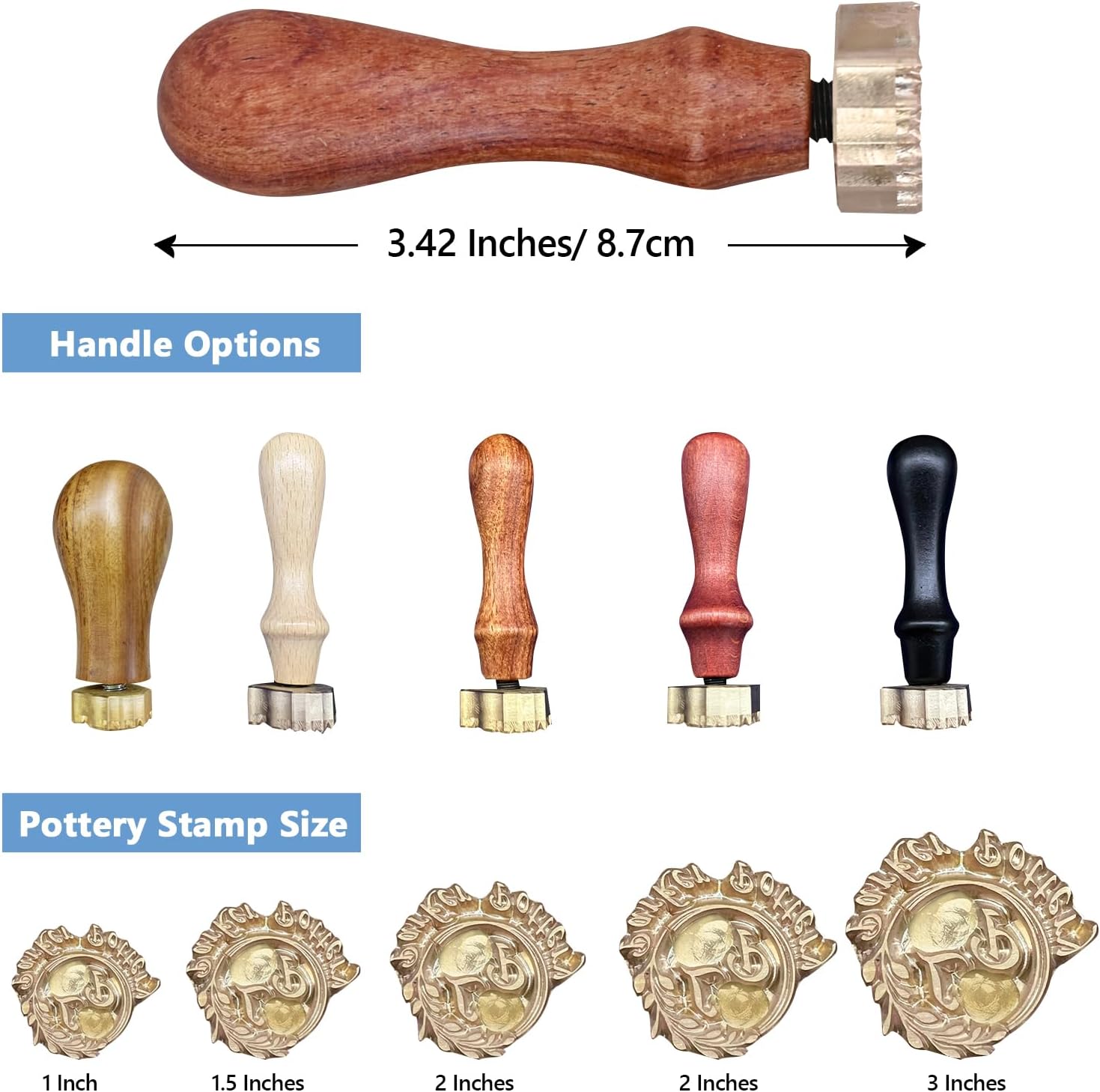 - Multiple Sizes: The handle of the pottery stamp is 3.42 inches long. The stamp heads are available in five sizes: 1 inch, 1.5 inches, 2 inches, 2.5 inches, and 3 inches.