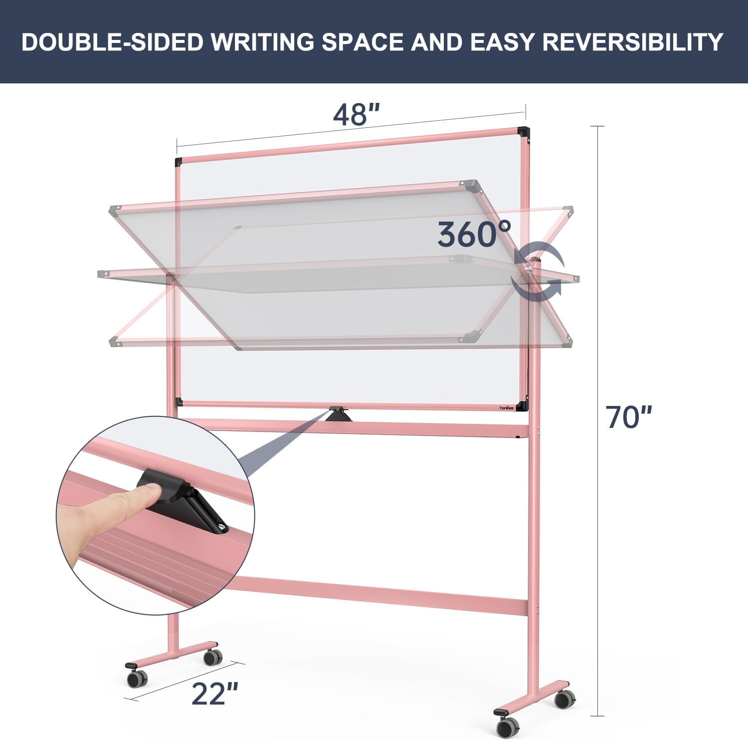 - 360° ROTATED & LOCKABLE - The dry erase board comes with 4 sturdy universal wheels that support 360° rotation. Each wheel has a locking system to keep it stable while writing and wiping.