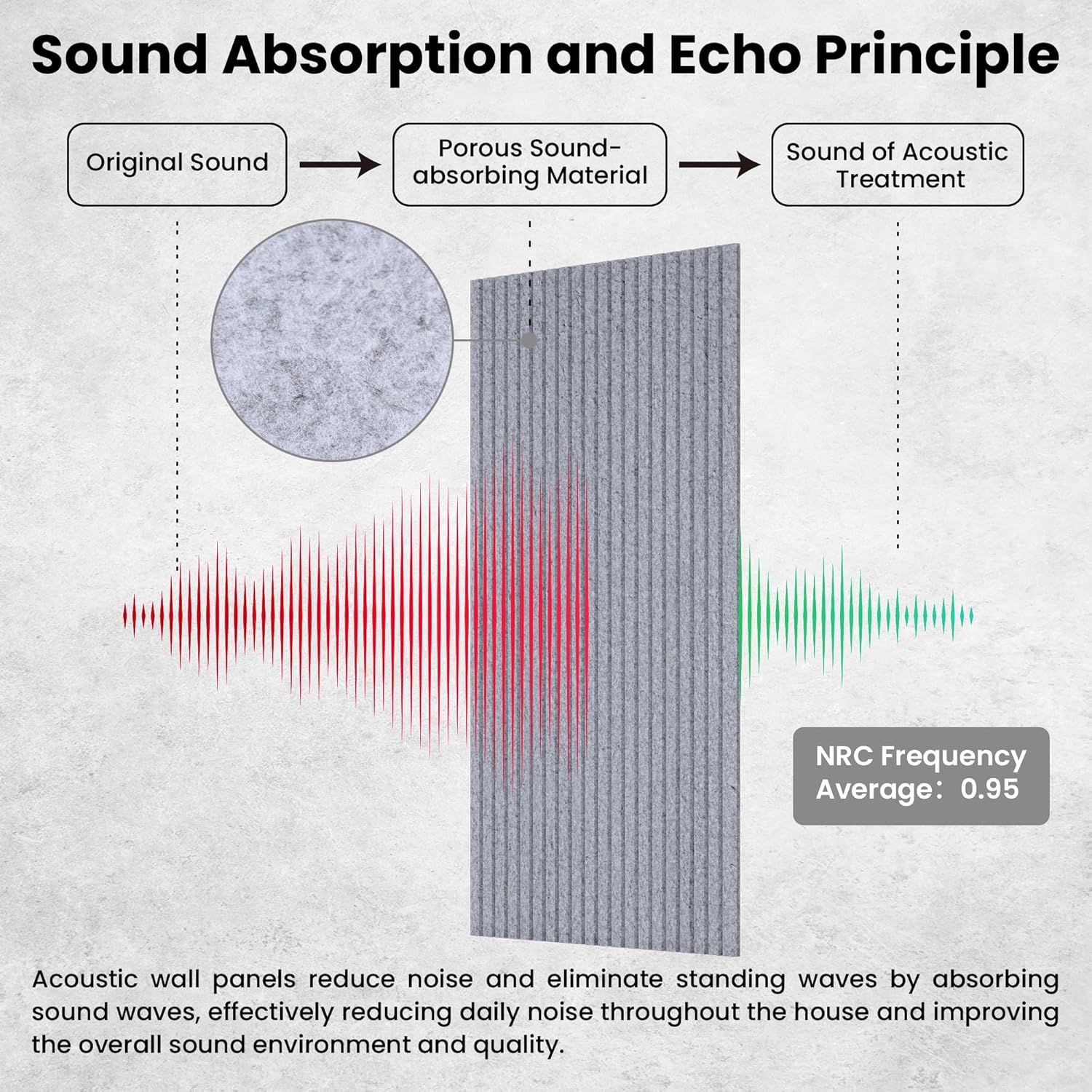 - 100% Polyester Fiber - The wall soundproofing panels is carefully made of 100% polyester fiber. Polyester fiber large acoustic panels have many advantages, such as excellent sound absorption, effective resistance to moisture and mildew, easy to cut,good stability, and has a high cost-effective.