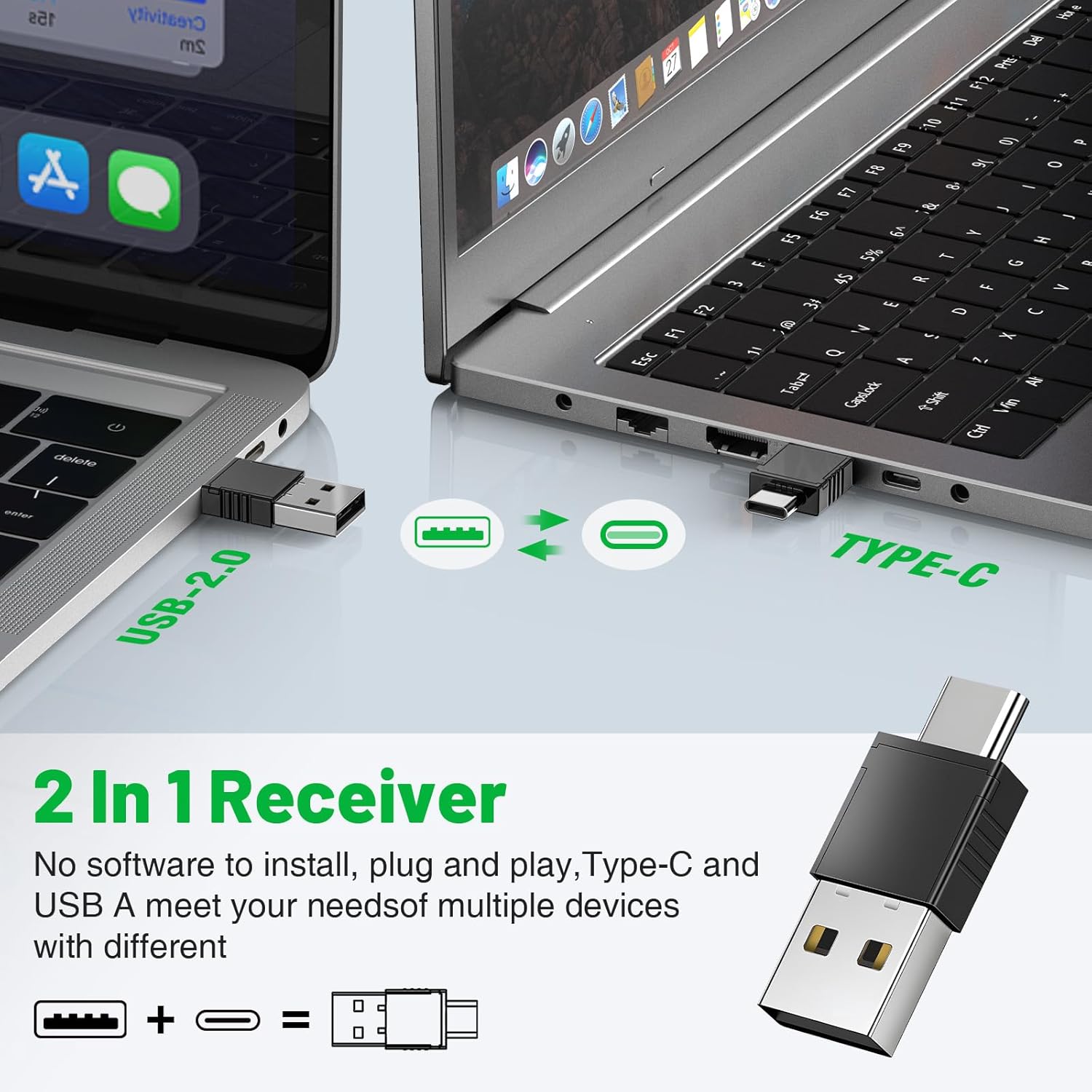 - 【WHAT YOU GET & CUSTOMER SERVICE】 1X Powerpoint Clicker with Pointer; 1 X 2-in-1 USB Type C Receiver; 1X USB C Date Cable; 1X User Manual for Wireless Presenter. We are dedicated to providing customers with the best products and services. Please feel free to contact us if any problems