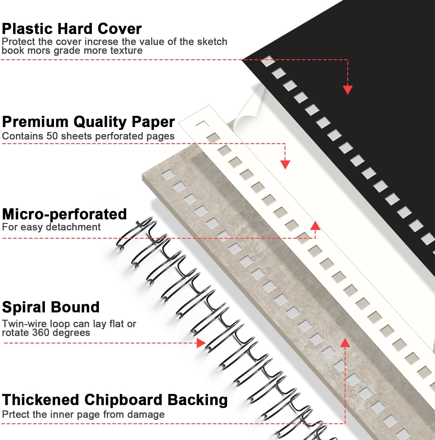 - ✅ Spiral bound natural white sheets, the spiral provides better access easily flip the pages over to the backs, easy removal for framing or displaying.