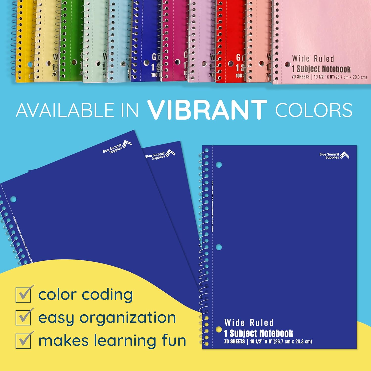 - Versatile 1 Subject Notebooks – This 48 pack of 1 subject notebook wide ruled includes 70 sheets per book, perfect for school notebooks, journaling, office projects, or donation drives.