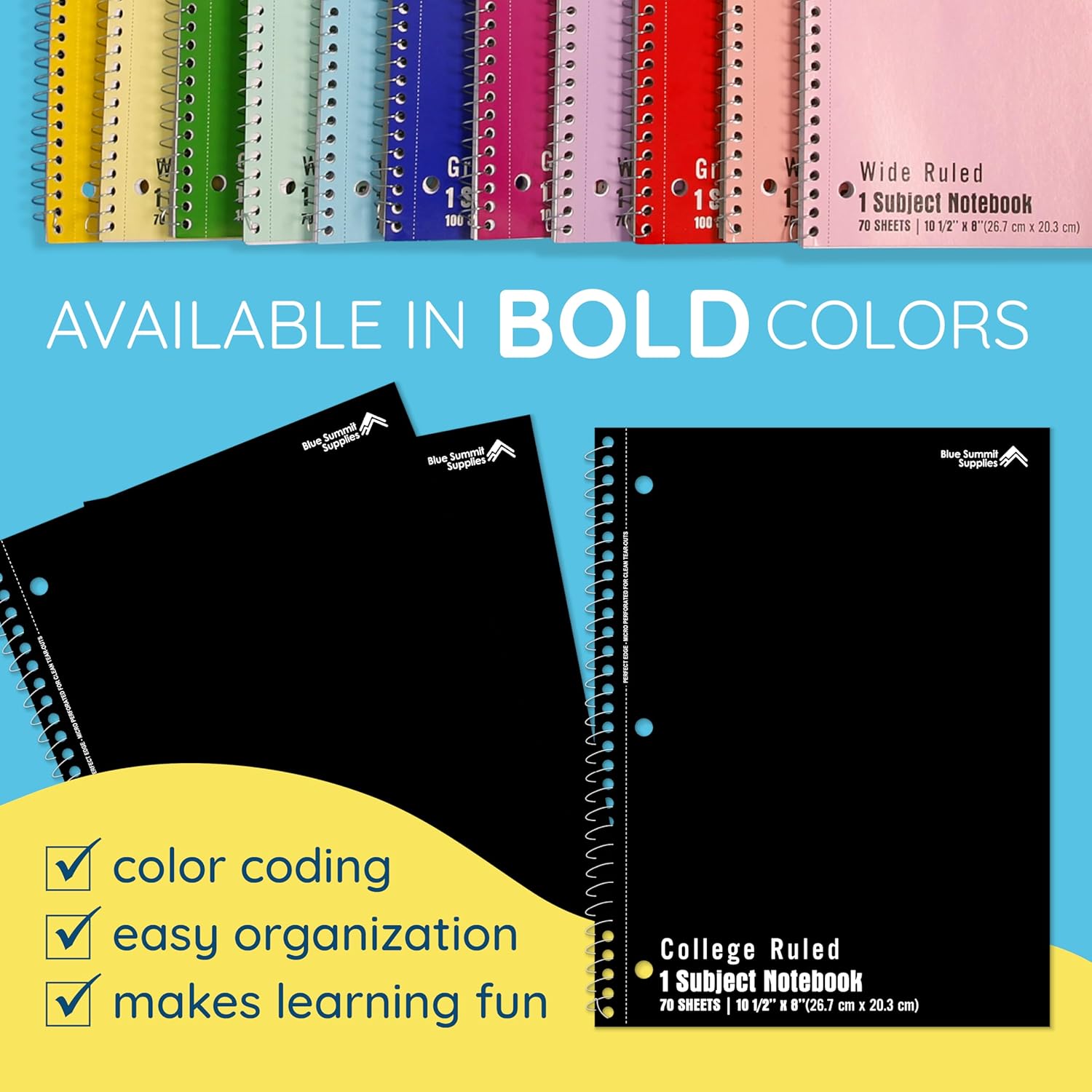 - Clean and Consistent Writing Surface – Each 1 subject spiral notebook college ruled includes 70 pages of smooth, lined paper—ideal for writing notebooks, schoolwork, or journaling with minimal bleed-through.