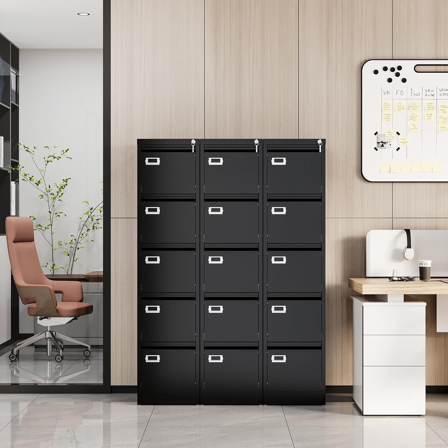 File Cabinets - 5 Drawers Vertical 17.8" Deep Lockable Filing Cabinet - Black & Gray Metal Storage Cabinets for Home Office to Hanging Files Letter/Legal/F4/A4 Size