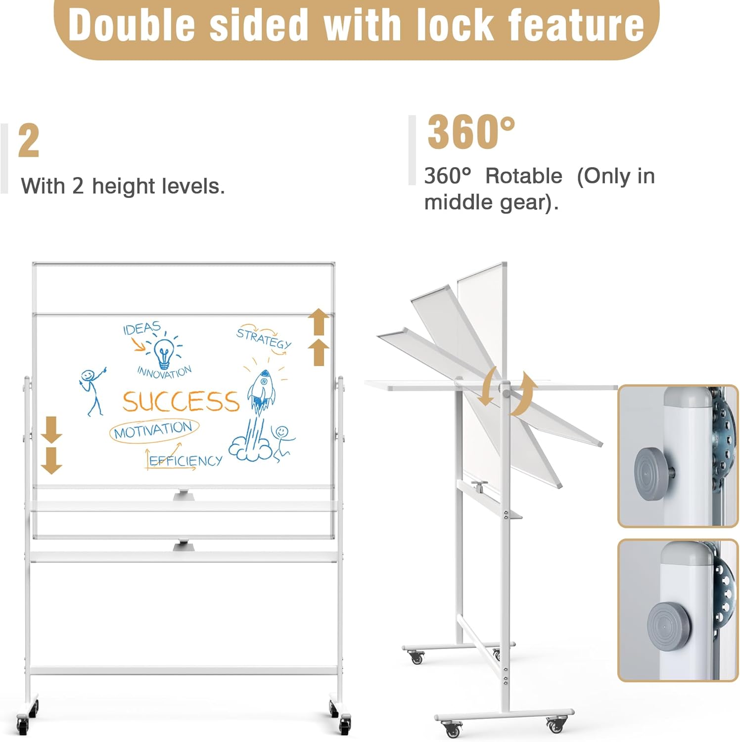- 🌟 ✔ 【360-Degree Rotation】 Maximize your writing space with this double-sided magnetic dry-erase board. It offers 360-degree writing capability (rotation is operational only in the middle position). The smooth rotation paired with a top-quality locking mechanism ensures easy use and security.