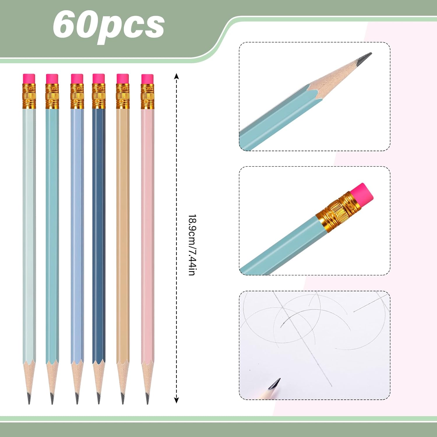 - Complete Your Writing Quest: dive into a writing journey with 60 pieces of quality wood cased pencils; Each plentifully packed kit comes with morandi barrel pencils capped with red erasers, wrapped in silver metal, ensuring your daily study and drawing needs; It also serves as an ideal supply that you can delightfully share with classmates and friends