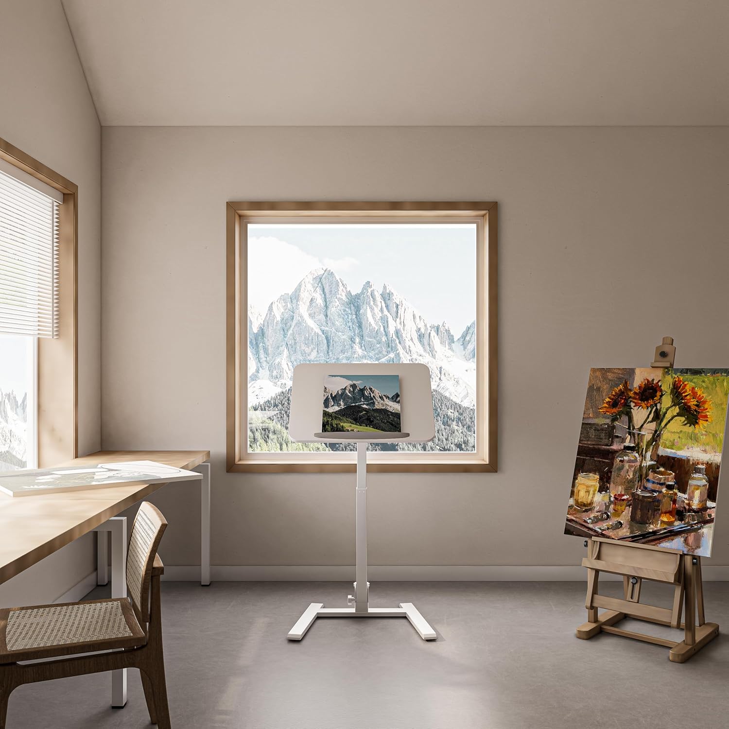 Mobile Folding Desk 25 Inch - No Assembly Sit-Stand Desk,Height Adjustable Rolling Laptop Desk, Space-Saving Portable Desk with Wheels for Home Office Craft & Study, White