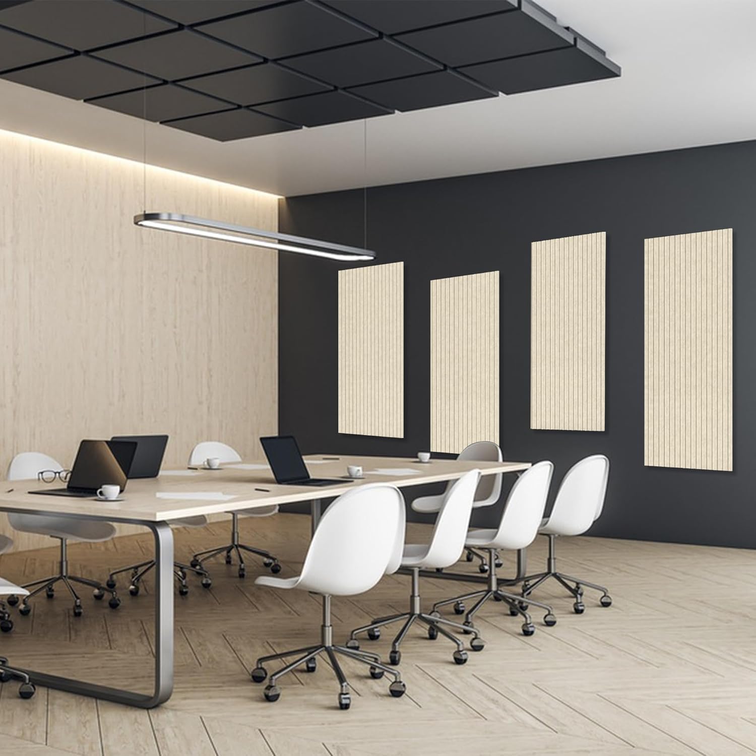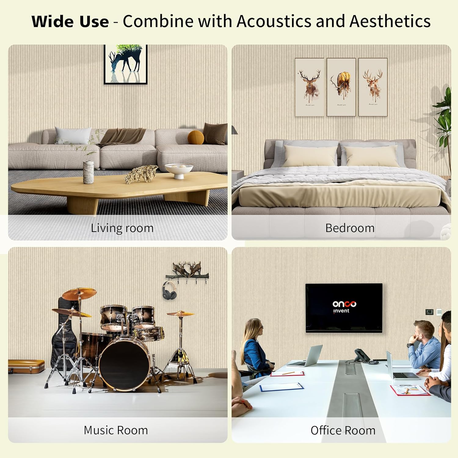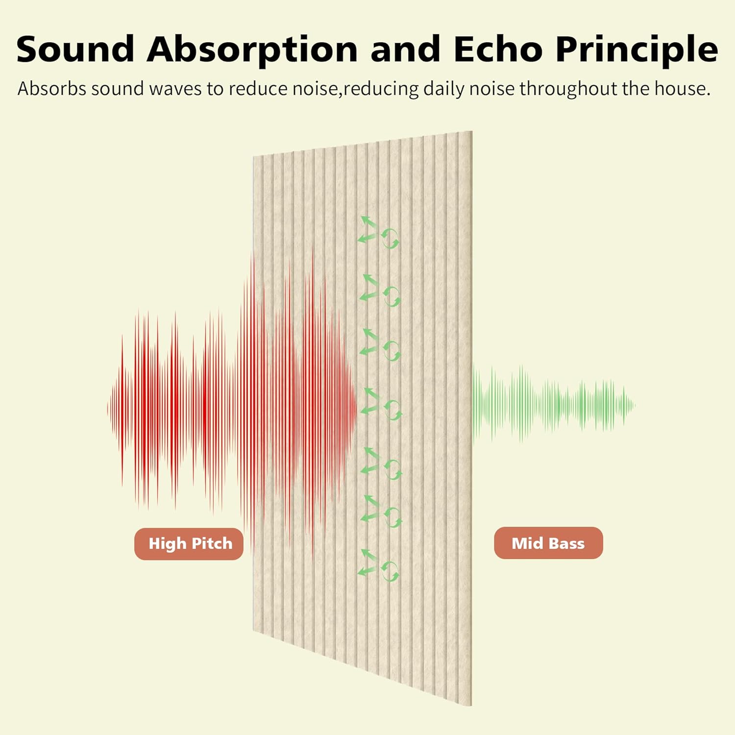 - STYLISH DECORATIVE: The noise dampening panels feature a creative slotted design and offer a wide range of colors to choose from, which can perfectly match your unique style and interior decor. Acoustic panel can be easily cut into different shapes for DIY wall art. Our soundproof wall panels use felt laminating technology to present vertical stripes in the form of large acoustic panels, which absorb unwanted sound and at the same time serve well as a decorative wall surface.