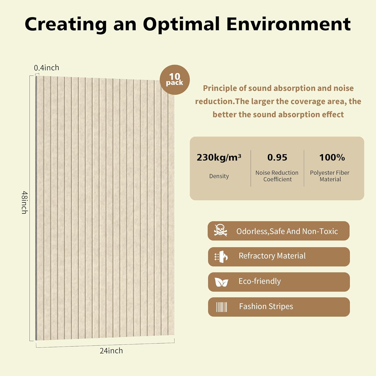 Acoustic Panels,10 Pack Sound Panels Noise Reducing for Walls,48"x24"x0.4" Soundproof Wall Panels,High-Density Acoustic Wall Panels,Decorative Wall Sound Absorbing Panel,Camel
