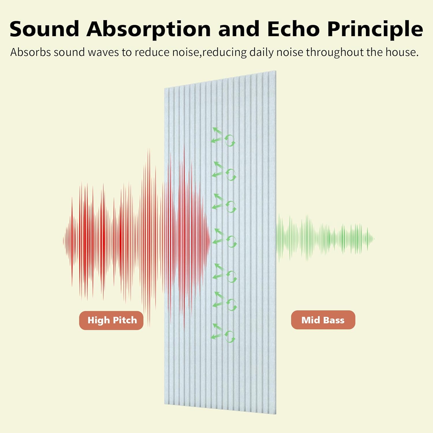 - STYLISH DECORATIVE: The noise dampening panels feature a creative slotted design and offer a wide range of colors to choose from, which can perfectly match your unique style and interior decor. Acoustic panel can be easily cut into different shapes for DIY wall art. Our soundproof wall panels use felt laminating technology to present vertical stripes in the form of large acoustic panels, which absorb unwanted sound and at the same time serve well as a decorative wall surface.