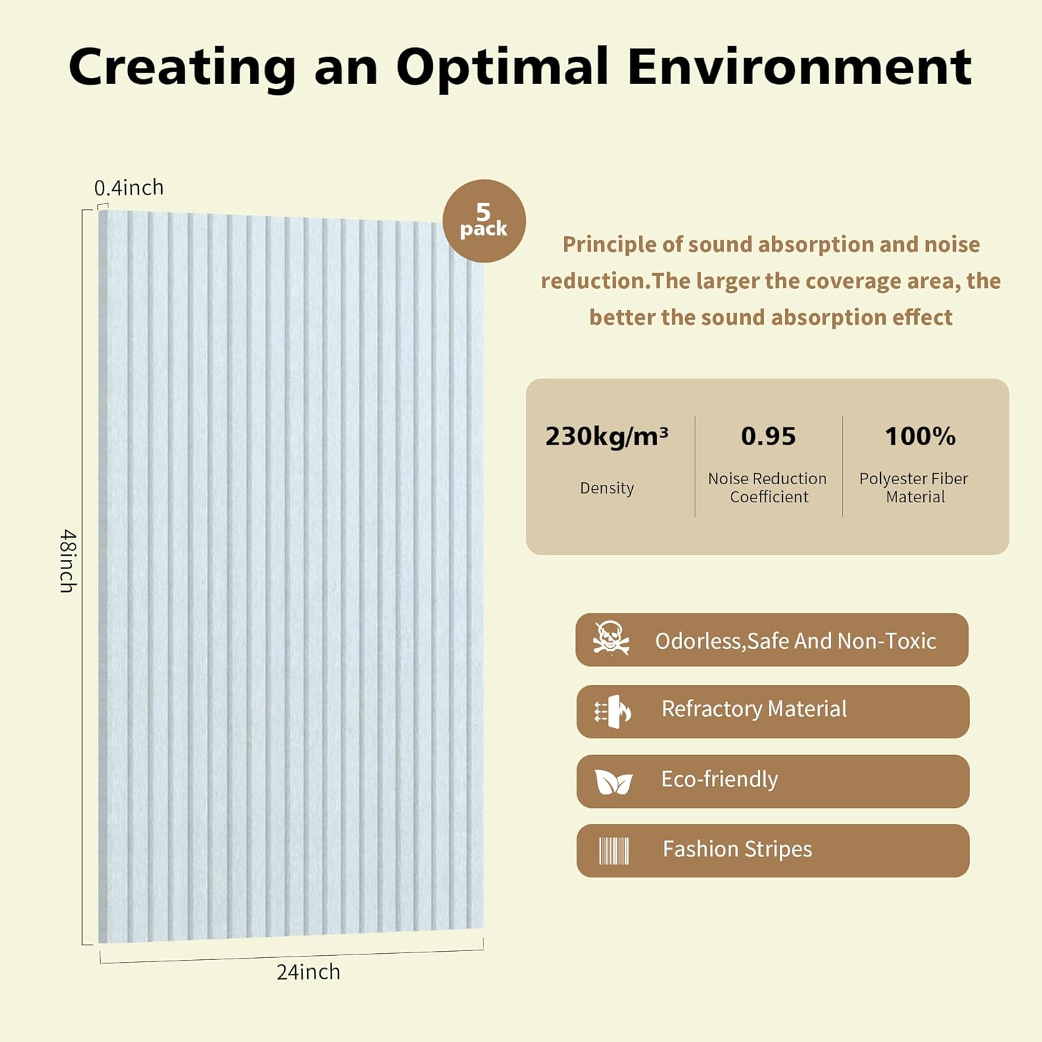 - REINFORCED PACKAGING: The product includes 5 pieces of high density acoustic foam panels. Comes with double-sided square stickers for easy and instant installation, no need to buy extra. The classic striped pattern will leave you with countless memories in a cozy environment. Our felt wall tiles have precise edges for seamless installation.