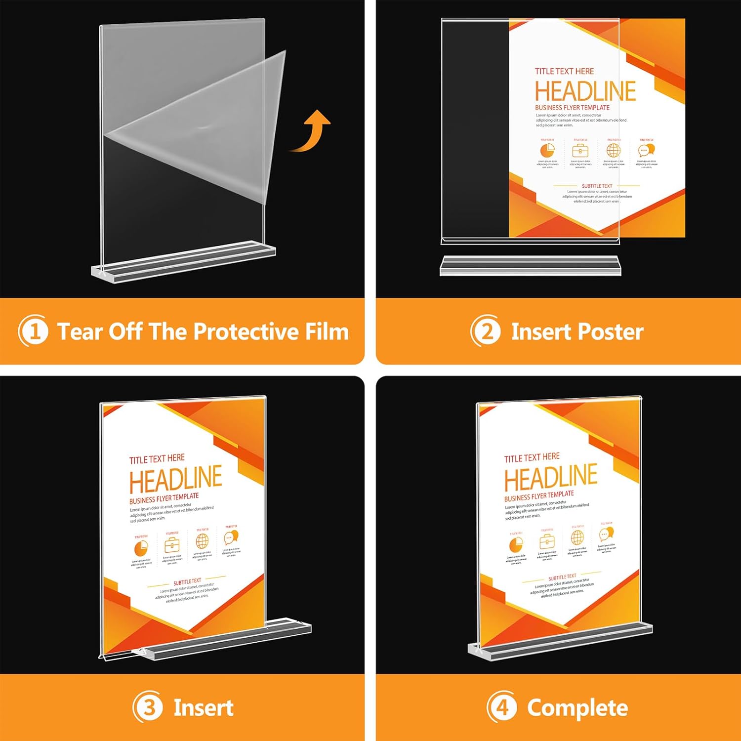 - Widely Used: 6 Pack 8.5x11 acrylic sign stands can meet your different needs, it can display flyers, advertisements, menus, etc, and can be used in restaurants, offices, bar counters, vendor events, or small business supplies.