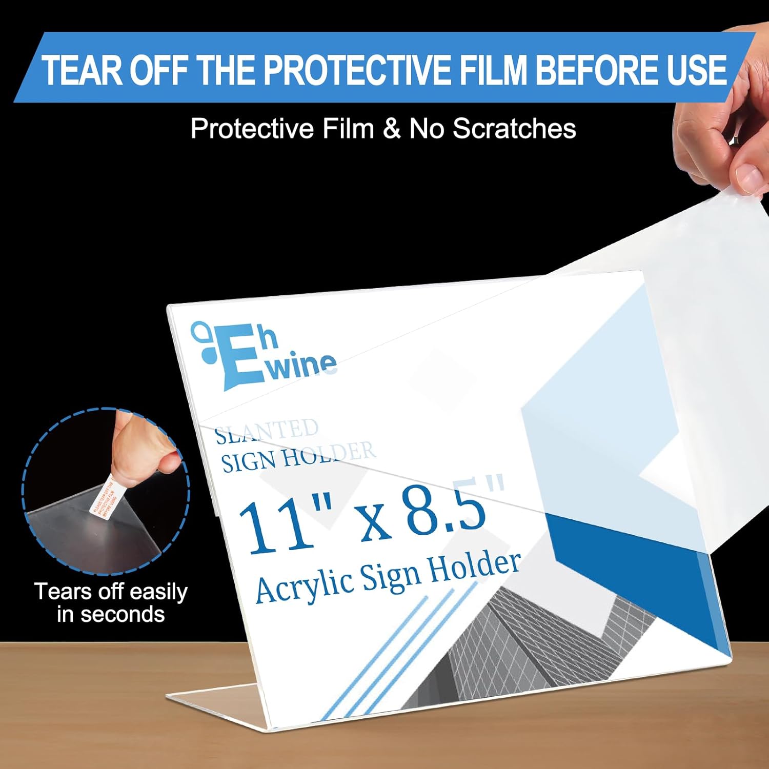 - Clear Picture Frame: EHWINE acrylic sign holders are very clear and transparent, and the L-shape design provides a professional look for your display. With no distortion or cloudiness, and your message will be conveyed with crystal clarity