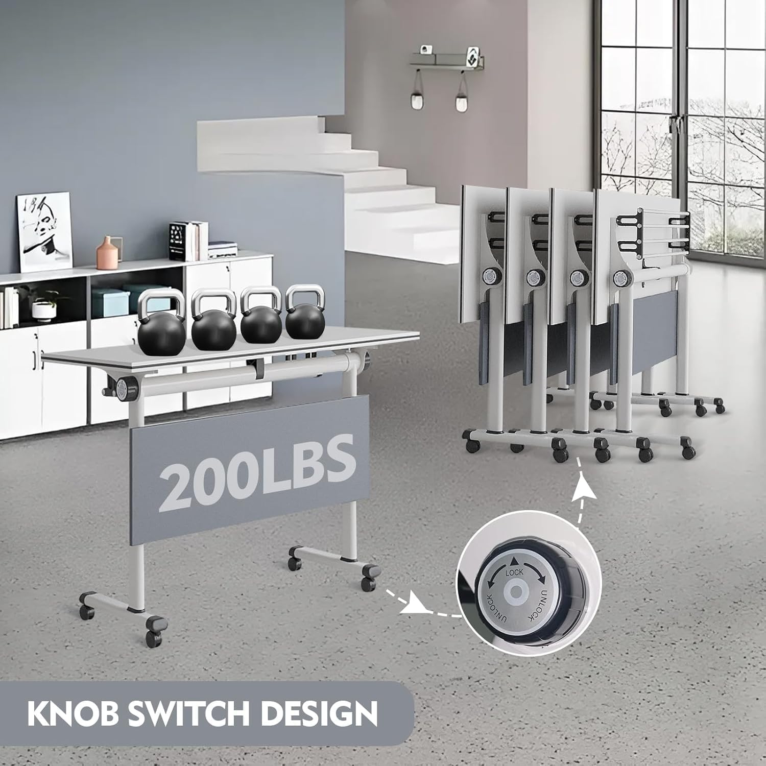 - ✅【ONE-CLICK FOLDING CONFERENCE TABLE】 Group room tables are an excellent choice for conference rooms, reception rooms and training rooms. Just turn the knob and the table can be easily flipped, saving a lot of space and making it easy to store and carry.