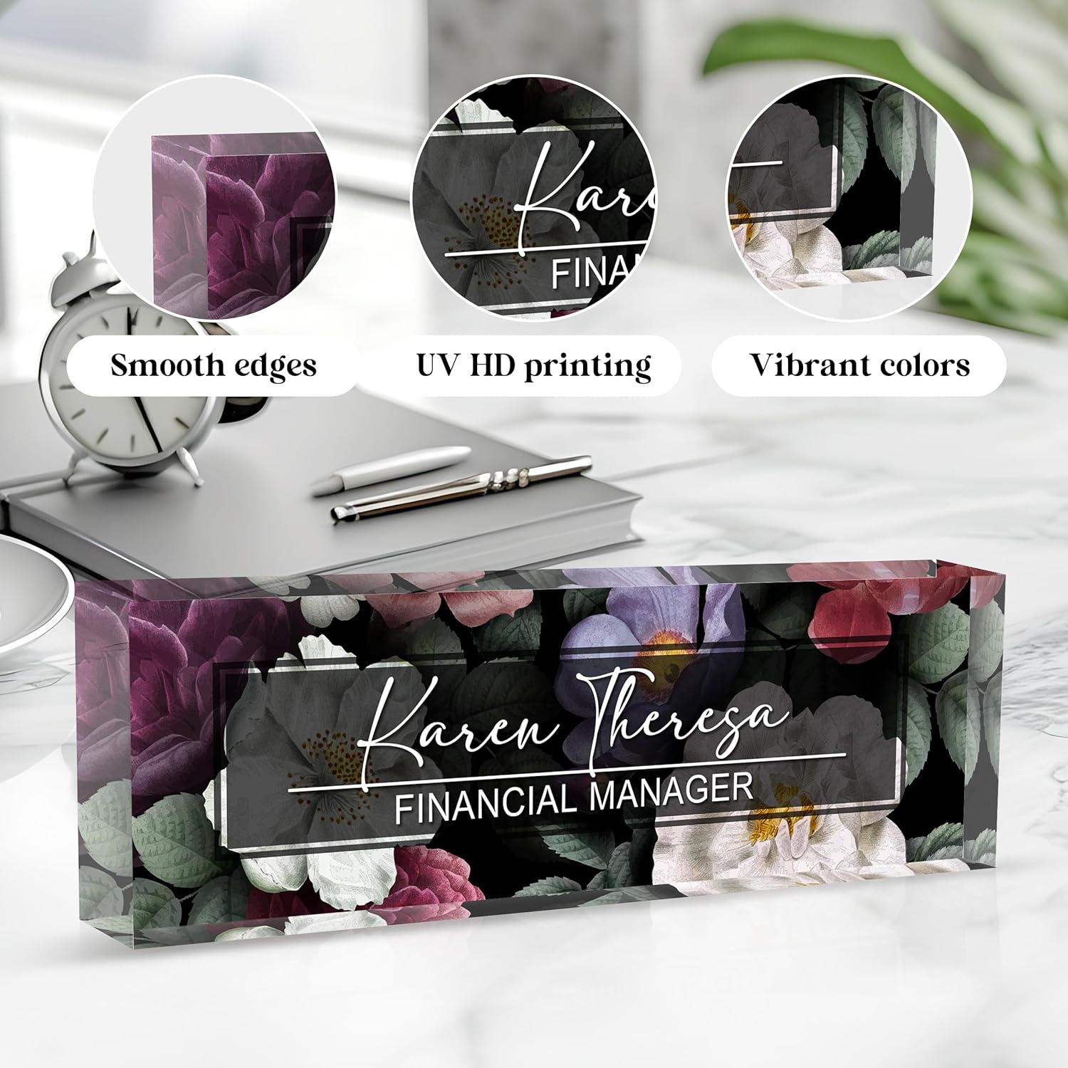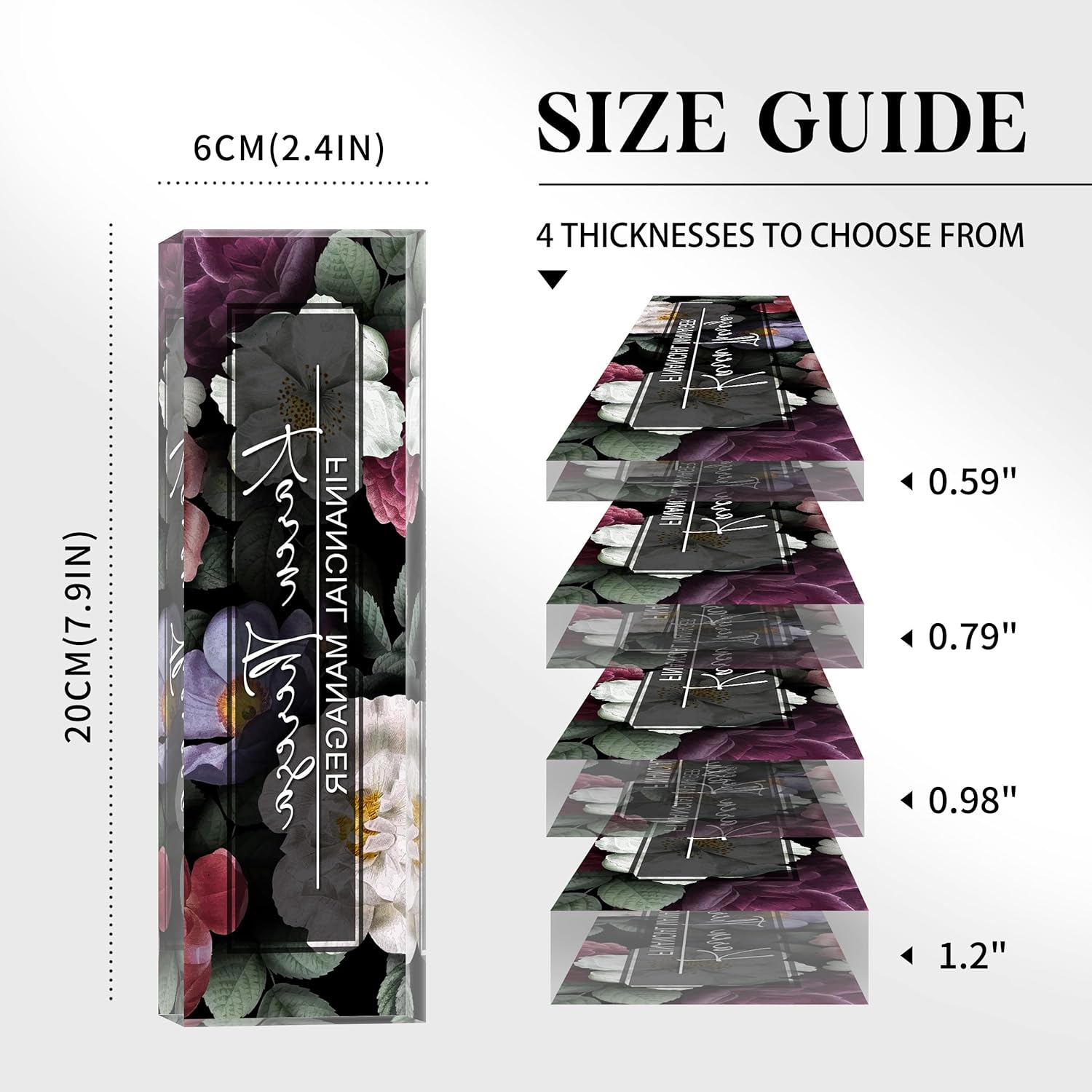 - 🍀 High Quality Acrylic - The name plate is made of high-quality transparent crystal acrylic blocks and printed on the back of the name plate using UV HD printing technology. The text and beautiful floral patterns present a 3D stereoscopic effect. The color is bright and will not fade, and can be used for a long time.