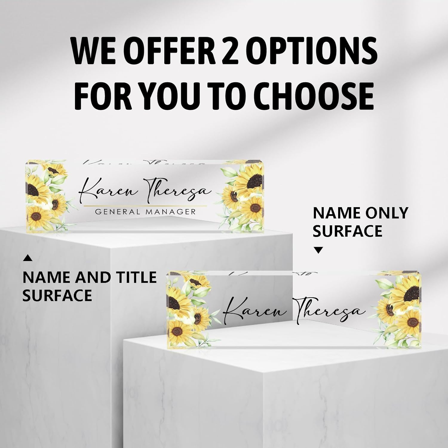 Custom Sunflower Office Name Plate, Personalized Gifts for Women & Employees, Appreciation Gifts for Boss & Teacher, Office Desk Accessories