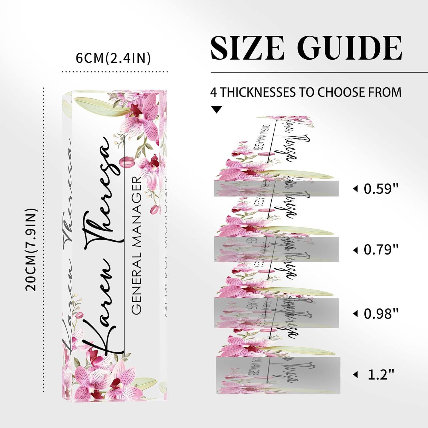 - 🍀 High Quality Acrylic - The name plate is made of high-quality transparent crystal acrylic blocks and printed on the back of the name plate using UV HD printing technology. The text and beautiful floral patterns present a 3D stereoscopic effect. The color is bright and will not fade, and can be used for a long time.