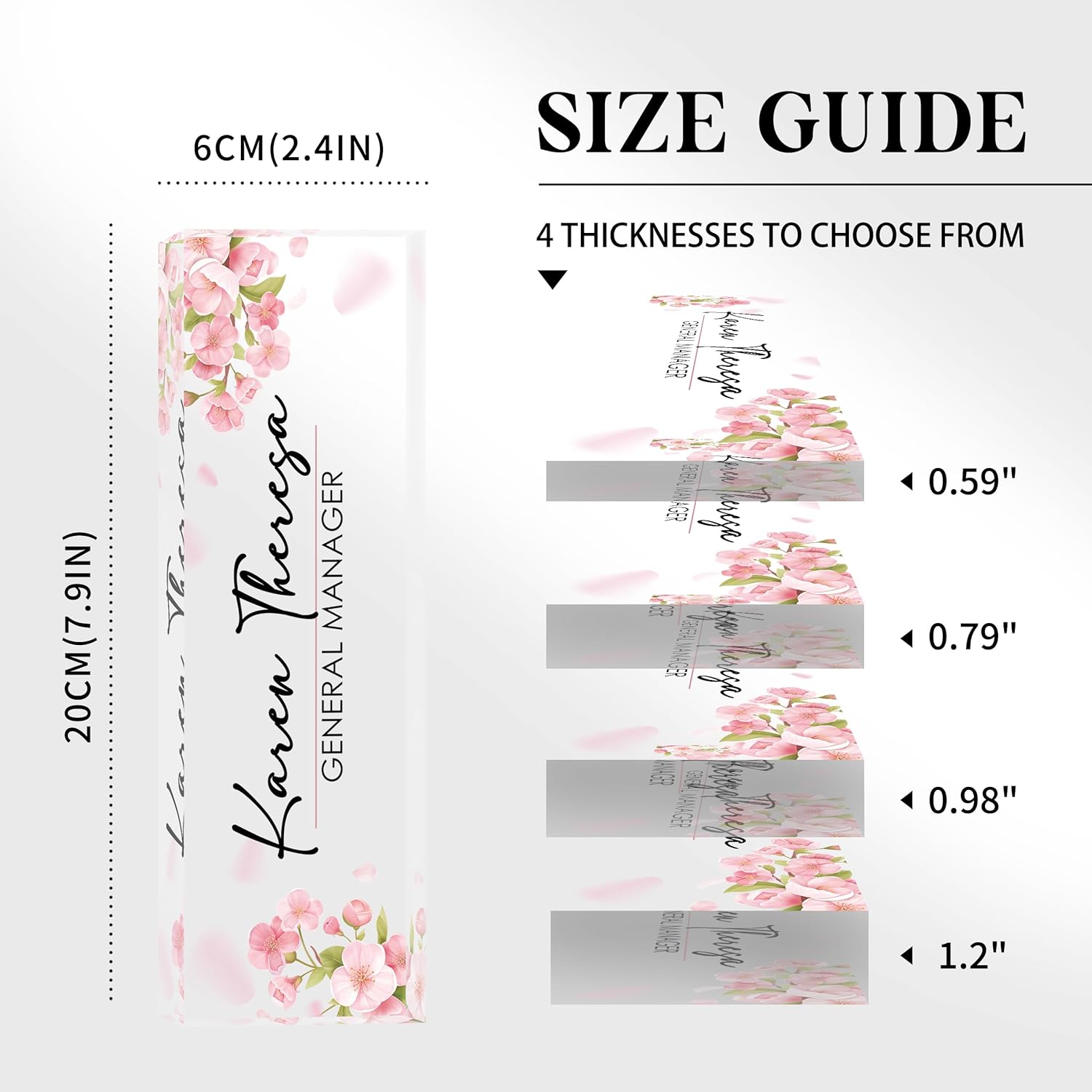 - 🍀 High Quality Acrylic - The name plate is made of high-quality transparent crystal acrylic blocks and printed on the back of the name plate using UV HD printing technology. The text and beautiful floral patterns present a 3D stereoscopic effect. The color is bright and will not fade, and can be used for a long time.