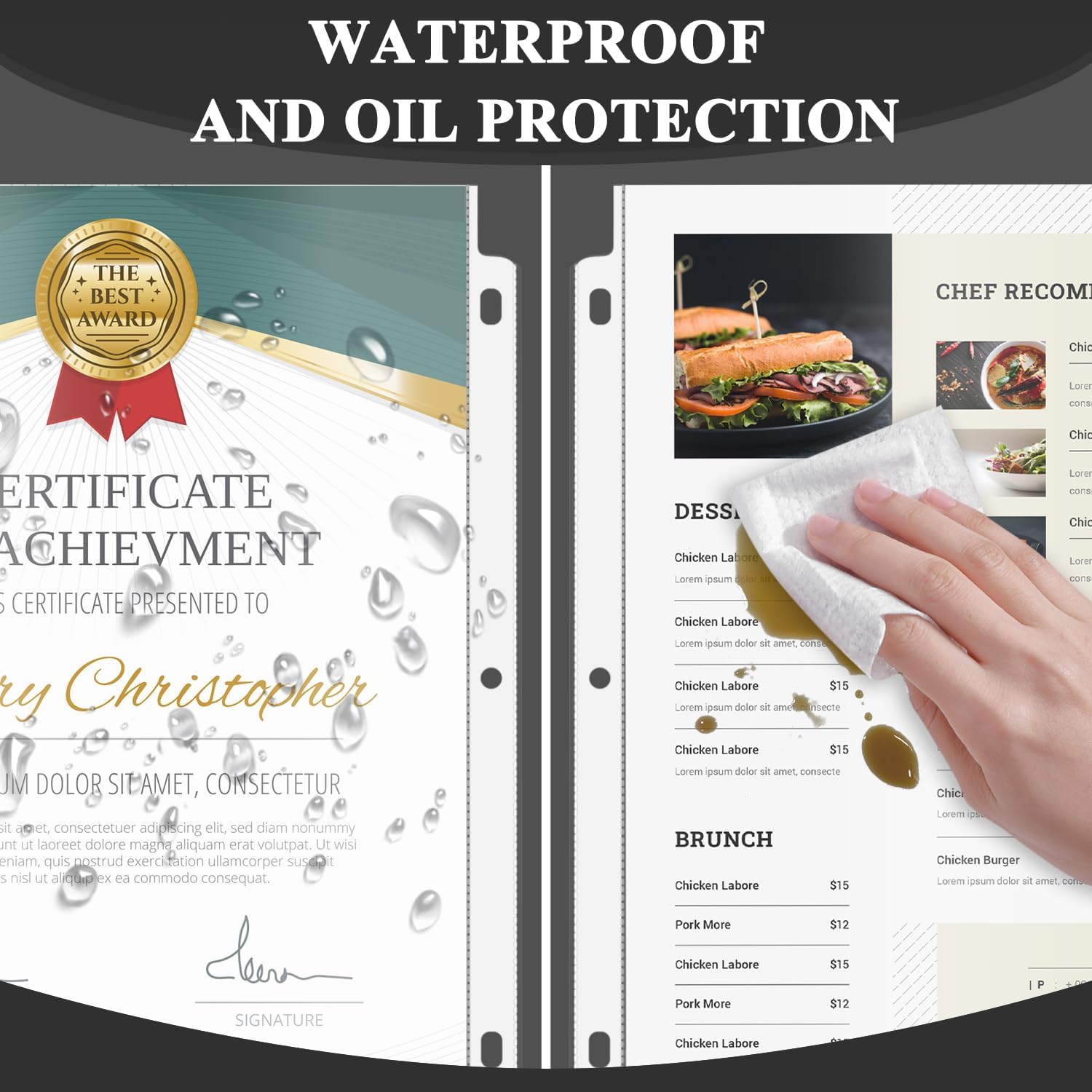 - Reliable Protection Against Spills and Wear: The plastic paper sleeves protect against spills and wear. Plastic sheet protectors ensure longevity, while plastic page protectors shield documents. Use plastic sleeves for binders and plastic sleeves for paper 8.5x11 to keep papers clean and intact.