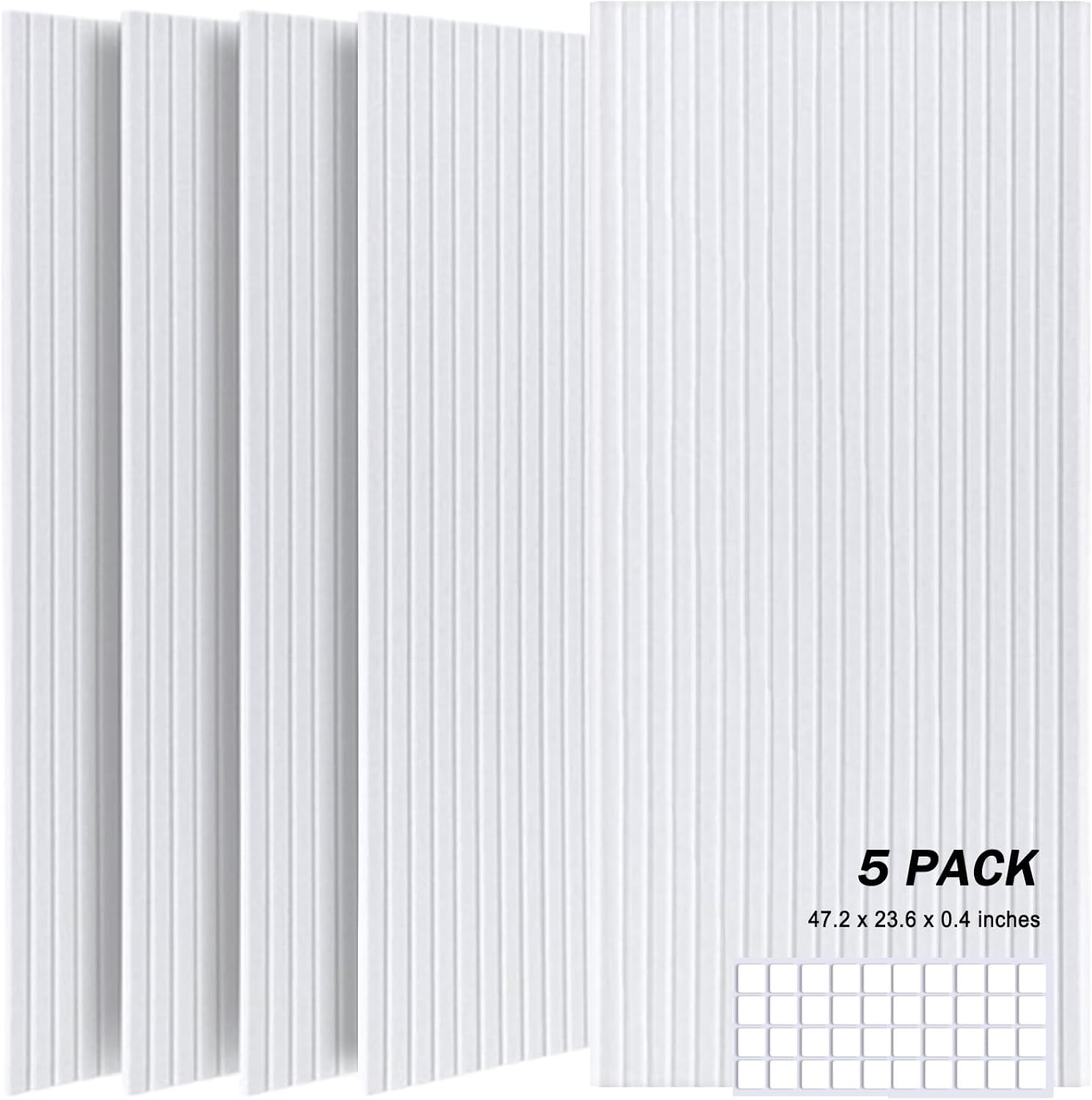 5 Pack Large Acoustic Panels, 48"X24"X0.4" Sound Proof Foam Panels for Walls, Sound Dampening Panels, Sound proof panels for walls, Soundproof Wall Panels for Home Studio&Office Decor.(White)