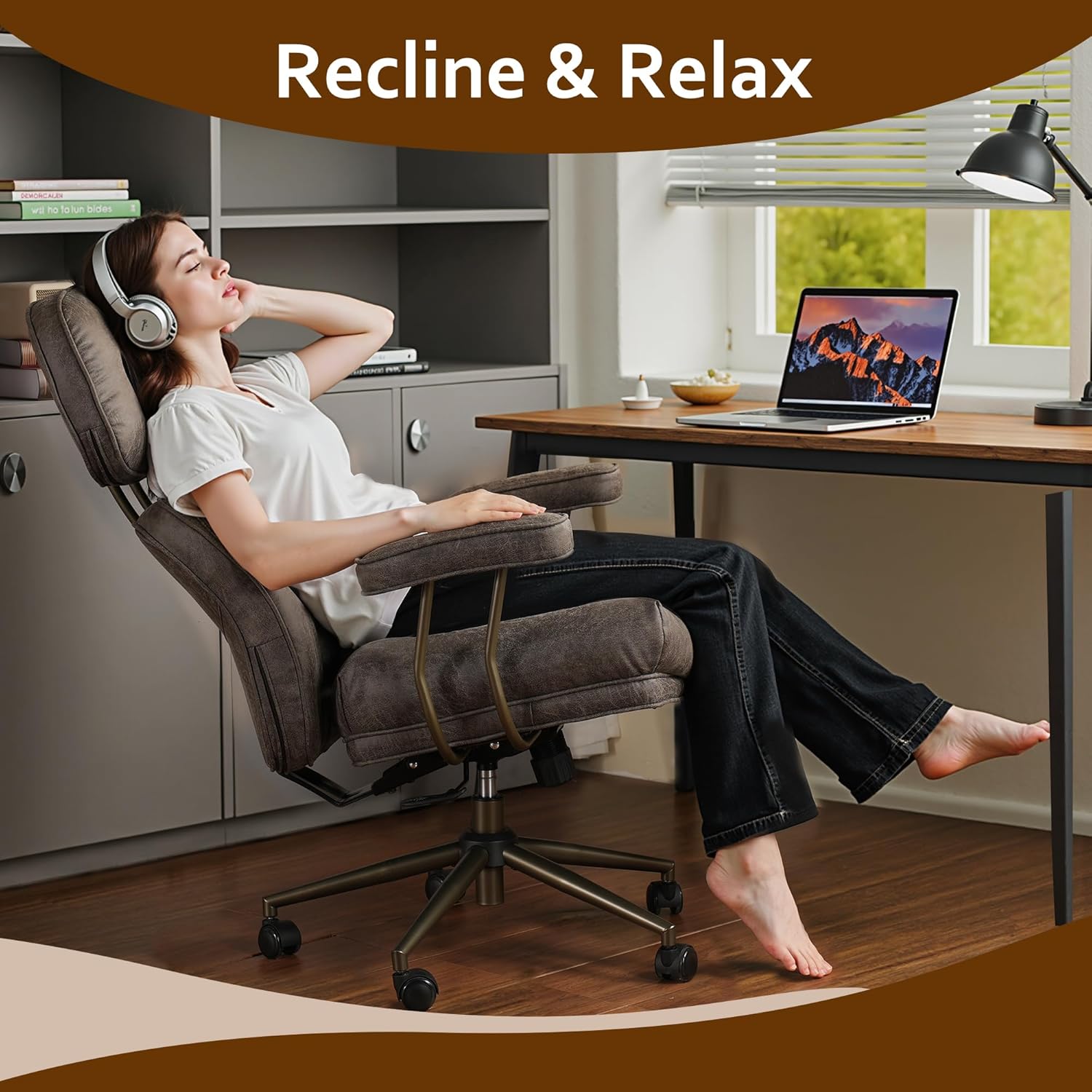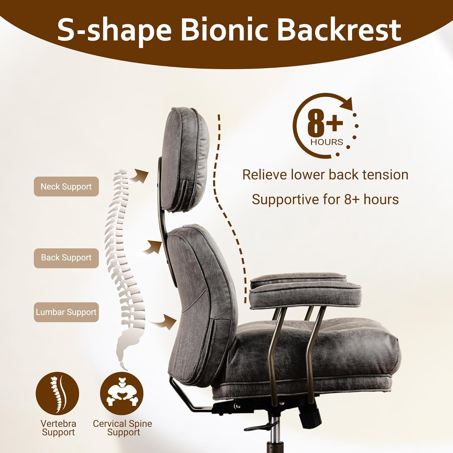 Faux Leather Executive Office Chair - Big and Tall Ergonomic Home Office Chair,Reclining Computer Desk Chairs with Lumbar Support,Adjustable Task Swivel Rolling PC with Wheels,Grey,Suede
