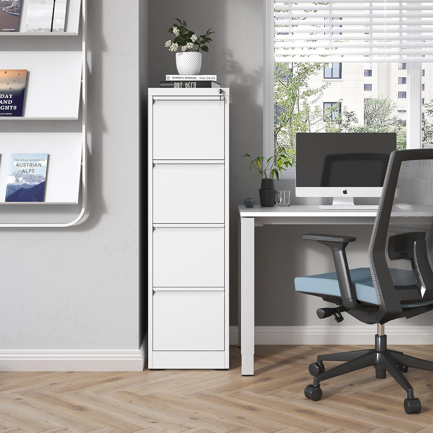 - ă4 Drawer Full-Extension File CabinetăThe slender rectangular silhouette with a clean white finish, this file cabinet is not only a practical storage solution but also adds a stylish touch to any home or office setting. Suitable for office, study room, bedroom, living room, etc.