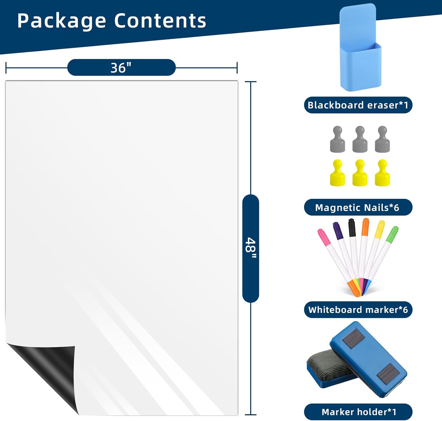 Magnetic Dry Erase Whiteboard for Refrigerators, 48" x 36" White Board on Wall for Organizer and Planner, Kitchen Fridge Shopping List with Marker, Magnetic Eraser and Magnets