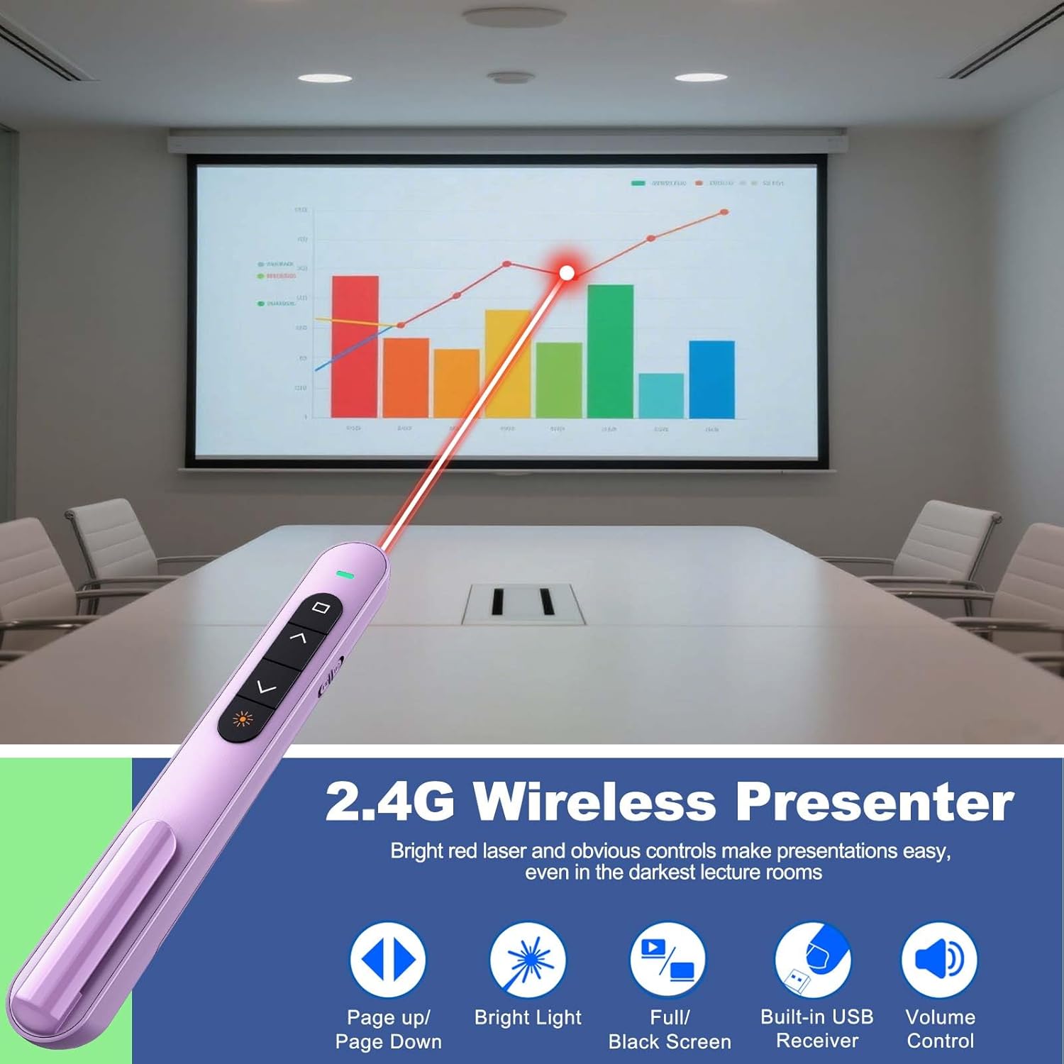 - ăBRIGHT RED LIGHTă This clicker for PowerPoint presentations can easily highlight important areas of the presentation with a bright red beam so that your audience will not miss any key points. It is suitable for all kinds of backgrounds and is clearly visible even in large auditoriums