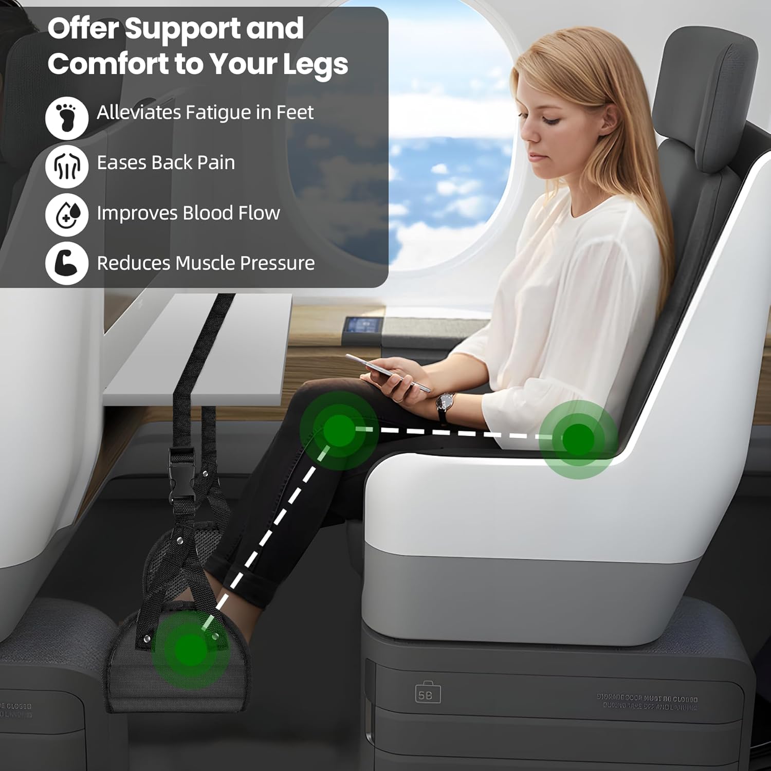 - Adjustable Foot Hammock Travel Haves:Portable and easy to set up, this Airplane Footrest is a travel accessory for long-haul flights. Equipped with an elongated and adjustable belt, this footrest can be effortlessly attached to the seat tray