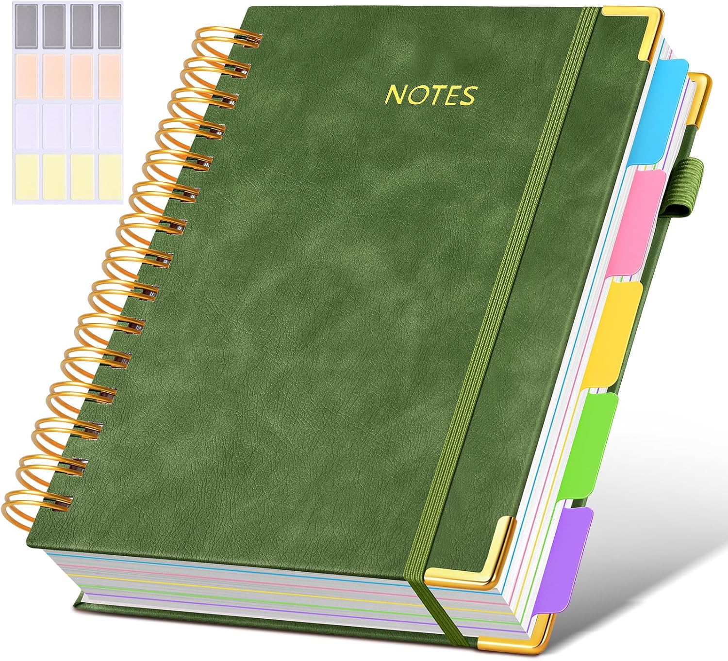 Hardcover Spiral Notebook journal with Removable Dividers Tabs, 300 Pages Leather 5 Subject Notebook College Ruled, 100GMS A5 Notebooks for Work School Note taking,Lined Journal for Women,A5-Green