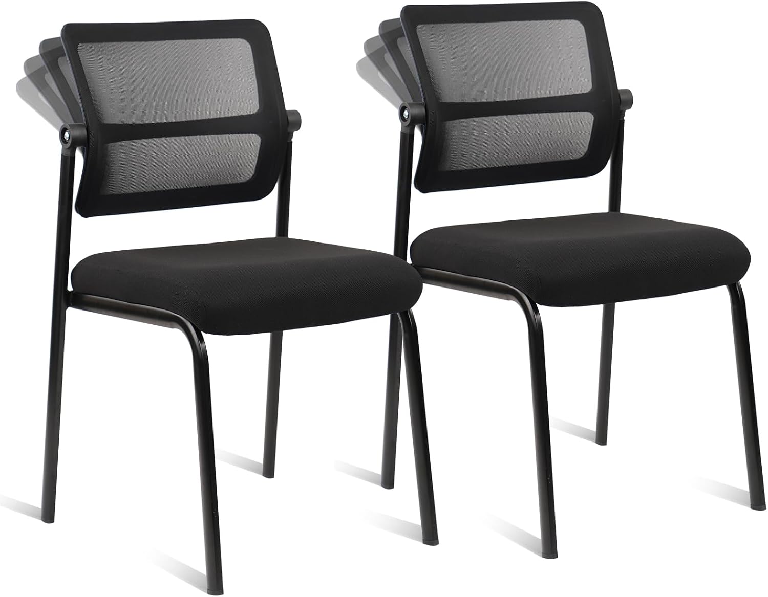 CLATINA Stacking Armless Office Waiting Room Chair with Adjustable Backrest, Stackable Mesh Guest Reception Desk Chairs with Ergonomic Lumbar Support for Conference Lobby Side School, Black, 2 Pack
