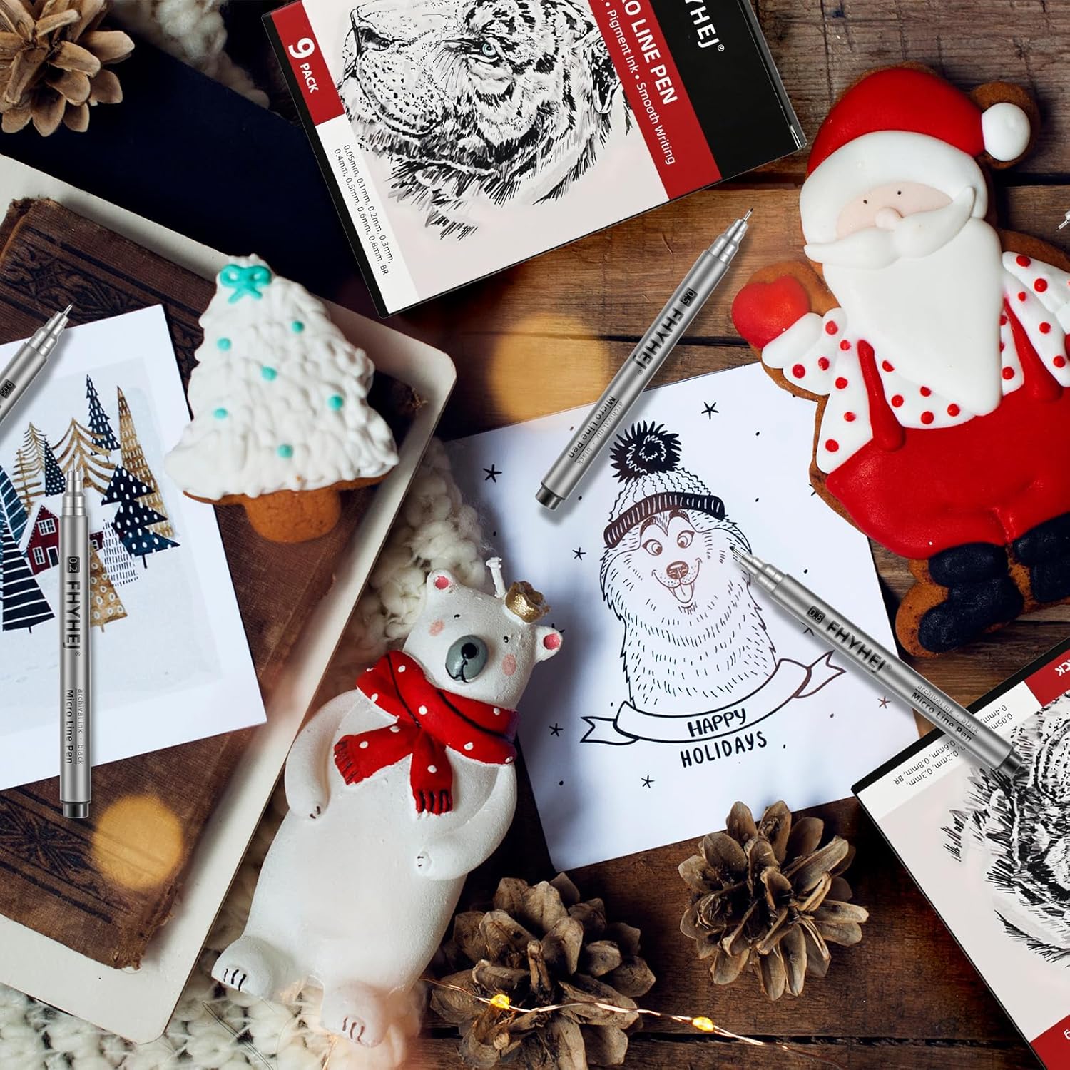 Micro Fineliner Drawing Art Pens: 9 Black Fine Line Ink Set Artist Supplies Archival Inking Markers Liner Professional Sketch Outline Anime Sketching Artist Illustration Watercolor