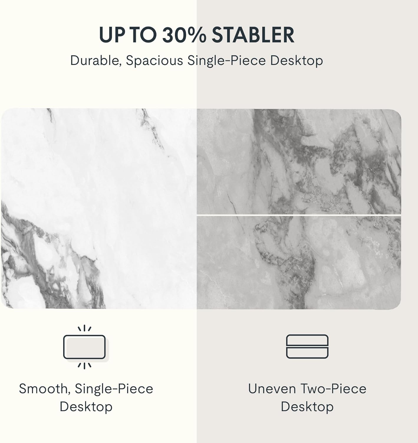 - 1" THICK ONE-PIECE DESKTOP:Experience the elegance of a completely smooth, seamless desktop surface. This design not only enhances the aesthetic but also ensures a sturdier and more stable structure compared to spliced tabletops.