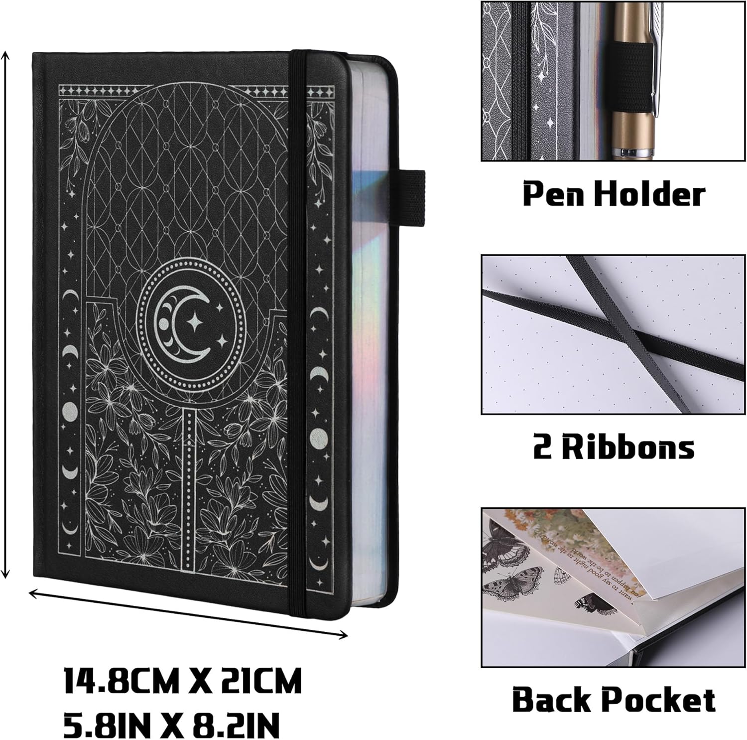 - A5 Hardcover Dotted Journal: The A5 Dot Matrix Notebook is the perfect combination of style and function. With an elasticated pen loop, two ribbon bookmarks, signature page, lanyard, and expandable inner back pocket, making this dot notebook a must-have for anyone looking to stay organized. Jot down your fun facts and thoughts in this special bullet point dot journal.