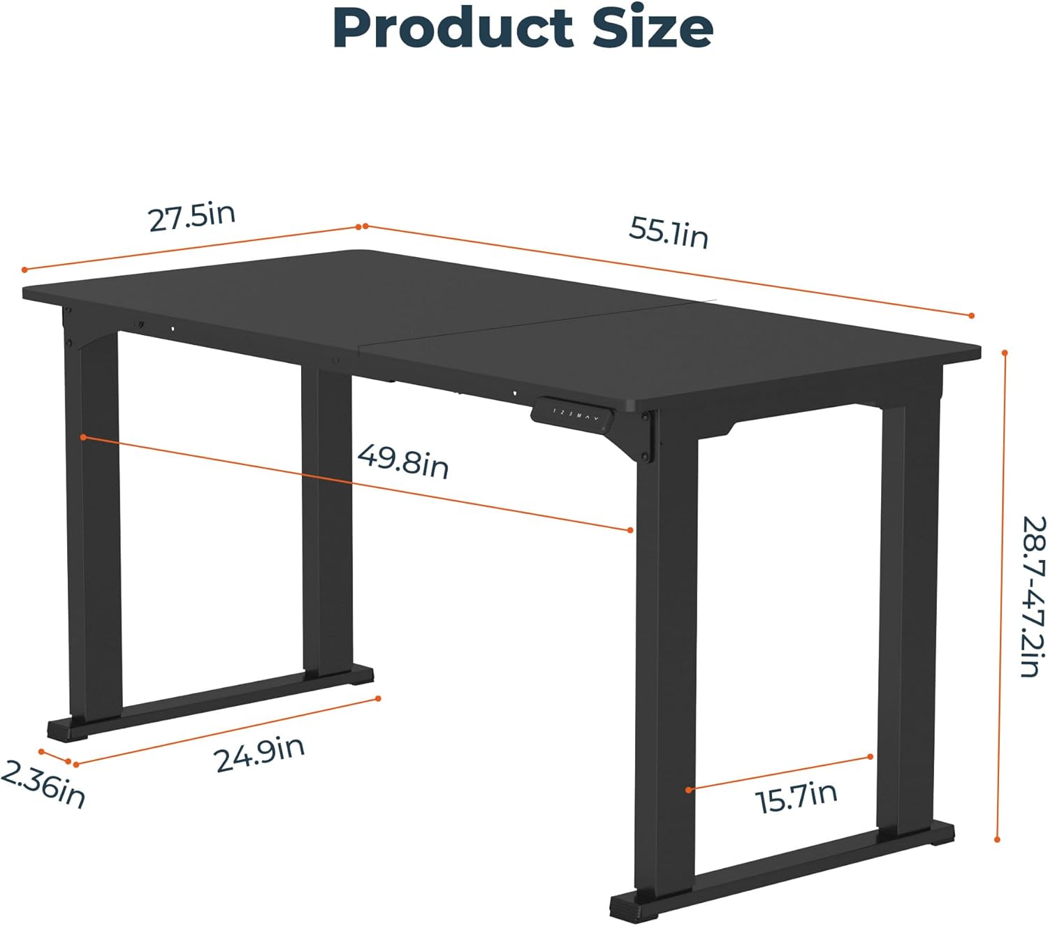 4 Legs Standing Desk, Large 55x28 Inches Electric Adjustable Height Desks with Splice Board, Stand Up Desk Home Office Computer Workstation, Black