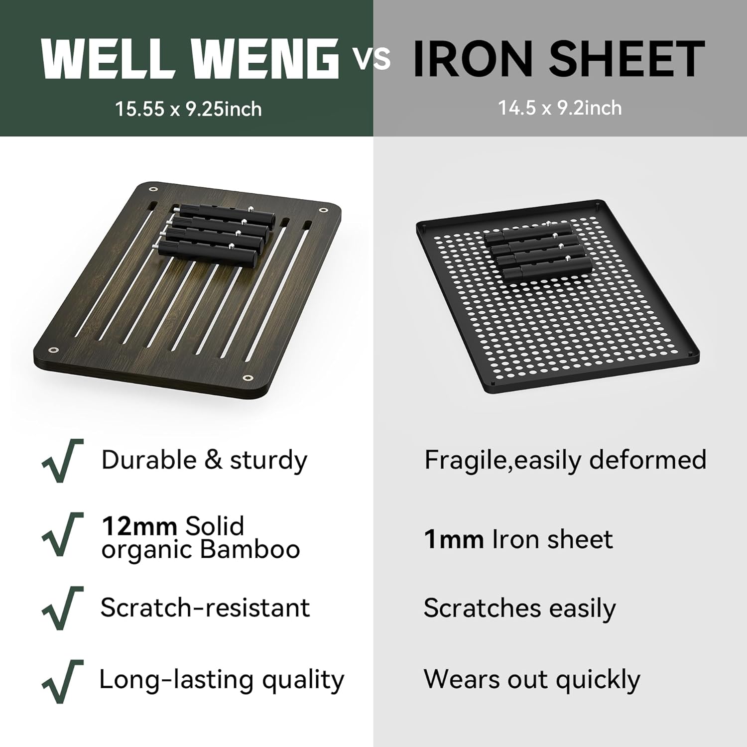 - Effective Heat Dissipation: Our monitor stand is crafted from high-quality bamboo, featuring a ventilated platform to prevent overheating and improve airflow for your electronic devices.Dimension-15.55”Wx9.25“Dx5.98"H(max)