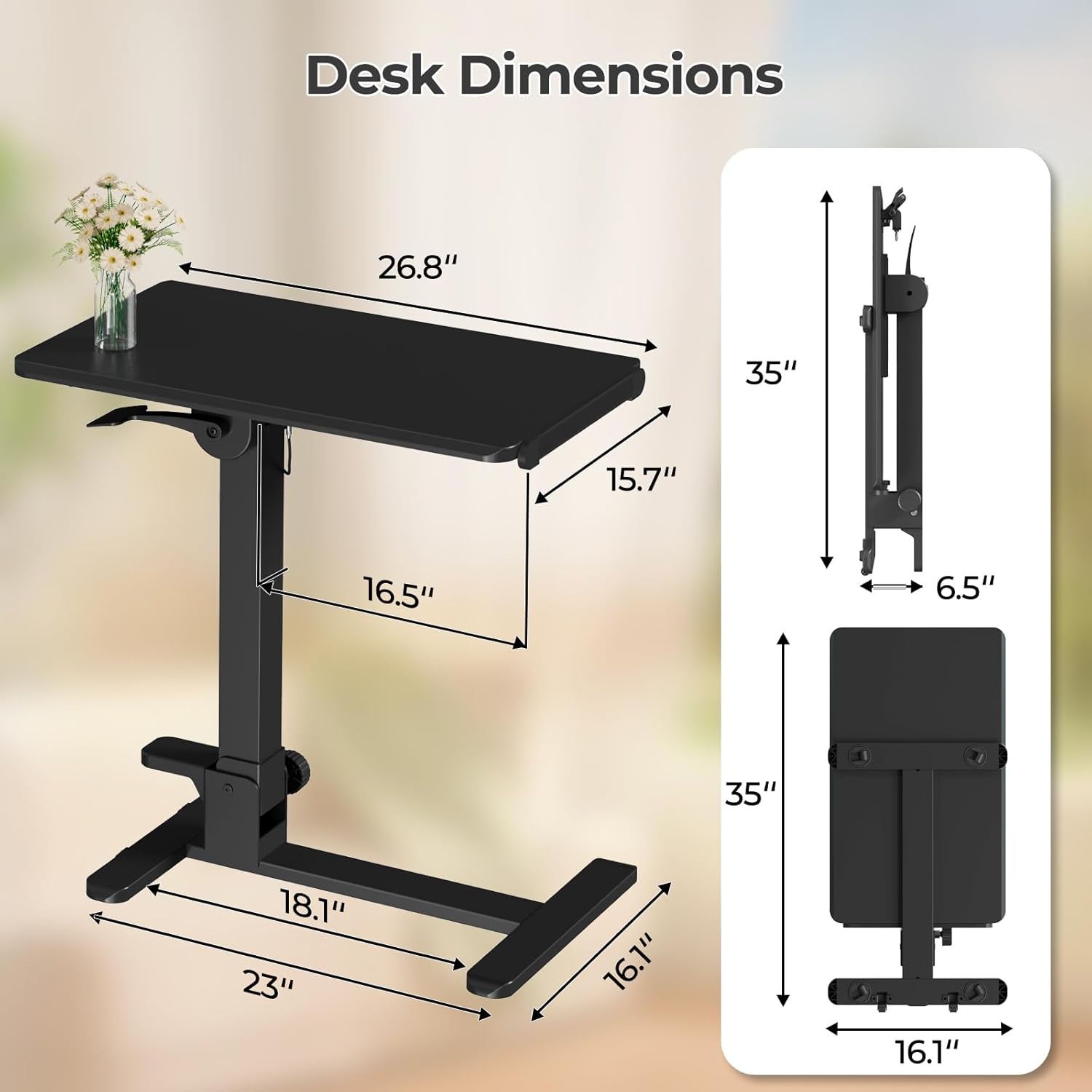 - Smooth Height Adjustment: The powerful gas spring mechanism of the rolling desk creates smooth height adjustment and customized settings from 27.5" to 40.6" by squeezing the handle. Enjoy the faster and quieter desk lifting in seconds.