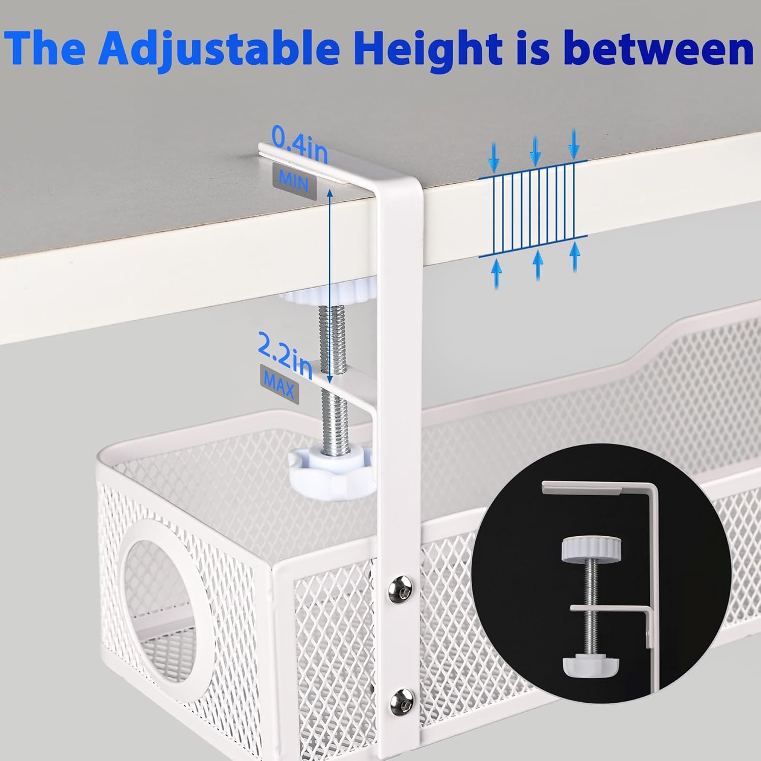 - No Drilling Required – Easy and Damage-Free Installation - The cable management tray features an innovative no-drill design with sturdy clamps, allowing for effortless attachment under your desk. It fits desks within 0.4" to 2.2" thick, so you can securely install it without the need for tools or causing any damage to your desk surface. It’s the perfect under-desk cable management solution for anyone looking to organize their workspace quickly and efficiently.