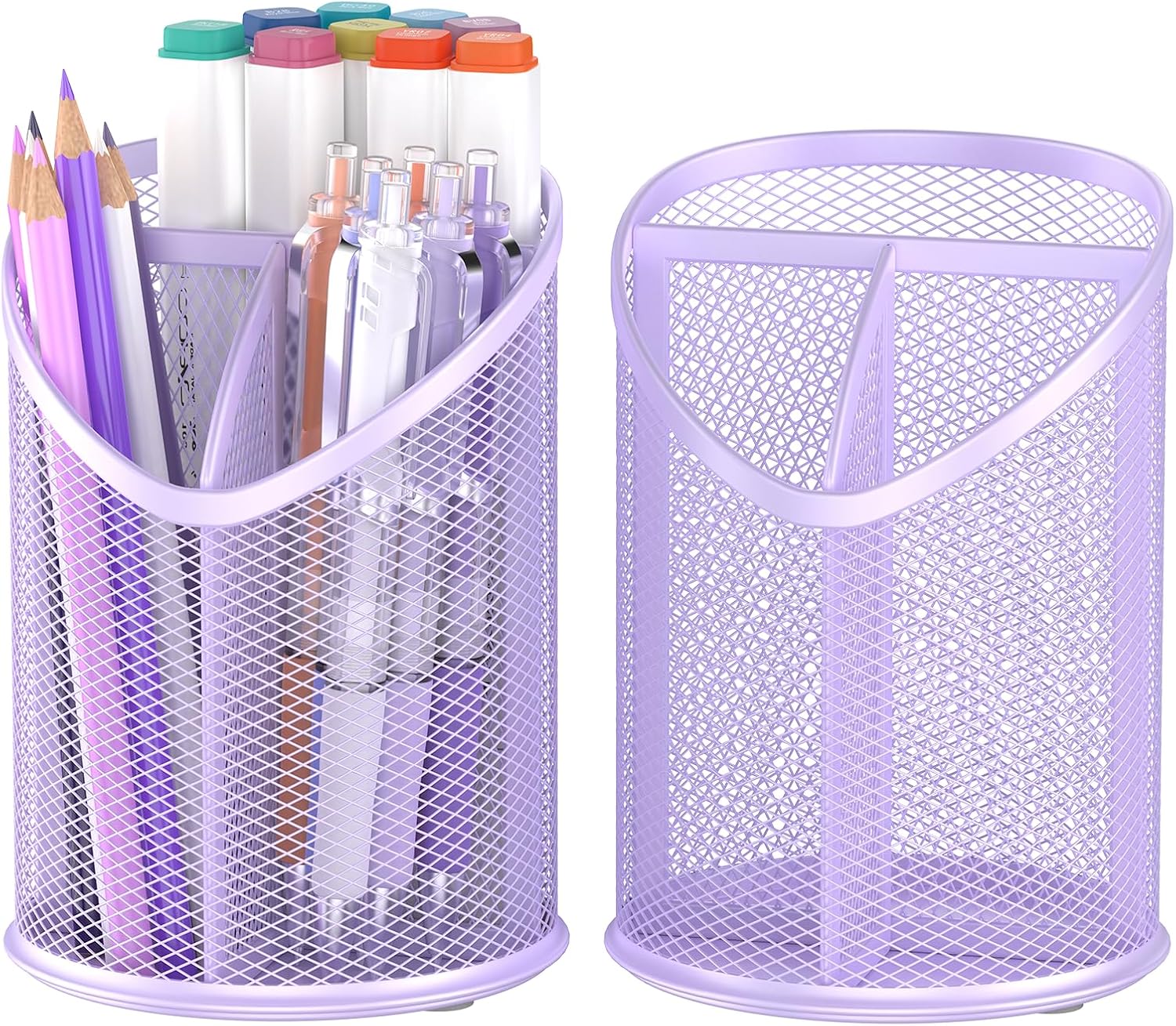 - ăStableăïŒPurple mesh pencil holder is constructed in sturdy metal and coated in black epoxy, solid metal structure, anti-fall, anti-cracking for long time using