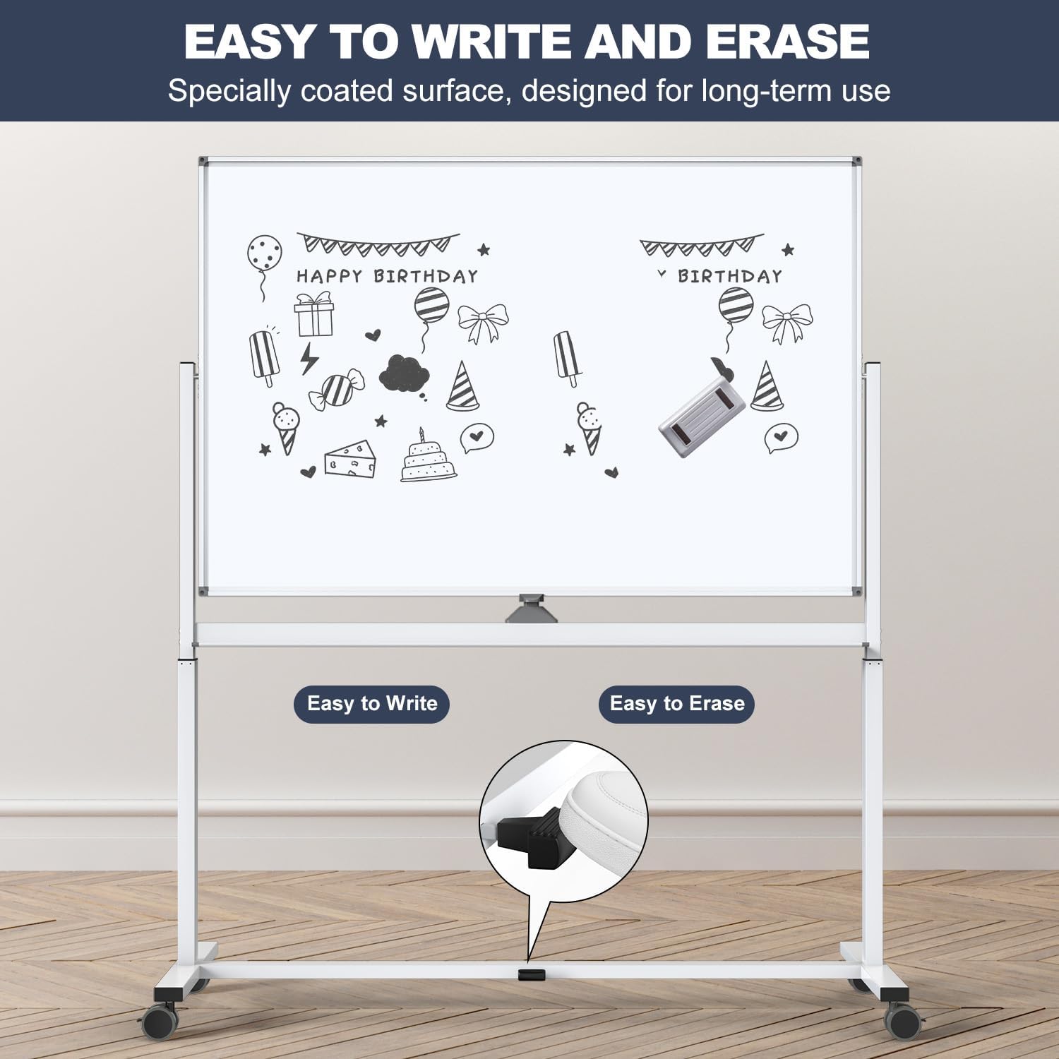 White Board on Wheels, 48 x 32 Inches Height-Adjustable Large Rolling Whiteboard, Mobile Magnetic Dry Erase Board with Stand, Double-Sided Standing Whiteboard for Office, Home, Classroom, School