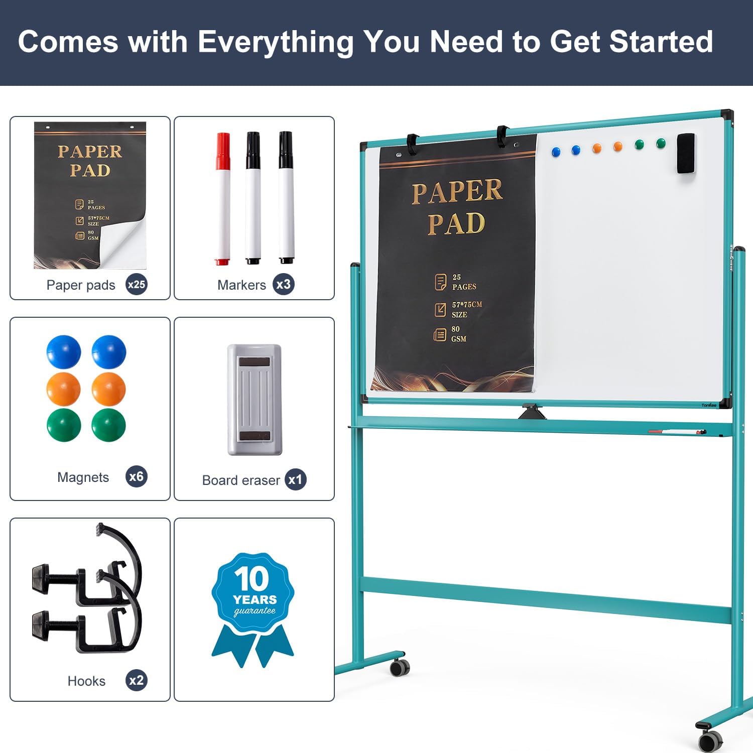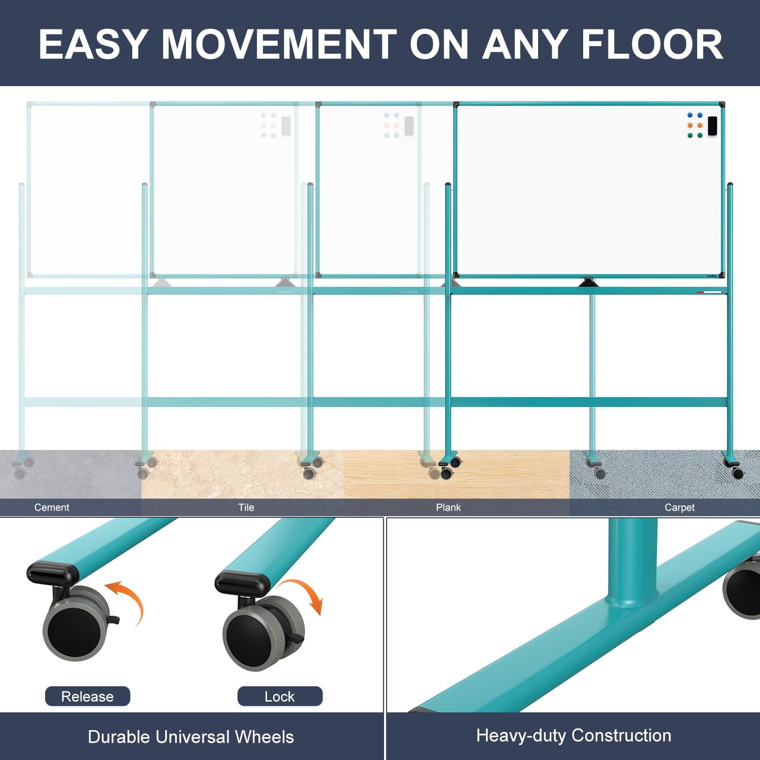 - DOUBLE-SIDED DESIGN - The double-sided whiteboard gives you plenty of writing space, while the board stopper ensures that the mobile whiteboard stays firmly in place during use, preventing it from moving or wobbling.
