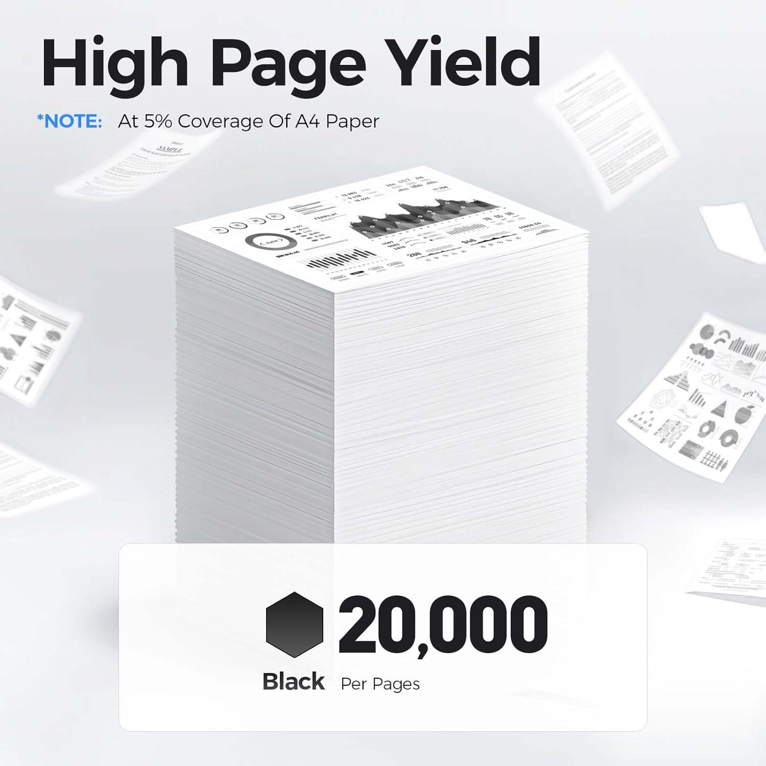 - High-Yield: up to 20,000 pages per B310/B315 Black (Total 40000 pages, 5% coverage).