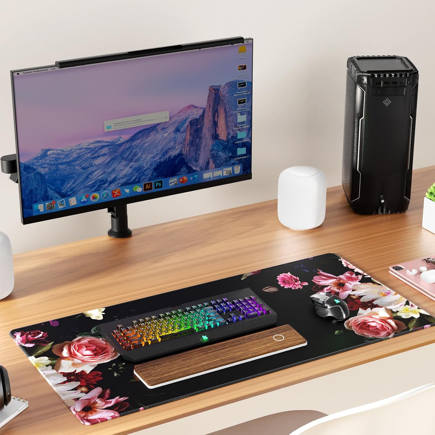 KTRIO Large Gaming Mouse Pad with Stitched Edges, Extended Mousepad with Superior Micro-Weave Cloth, Non-Slip Base, Water Resist Keyboard Pad for Gamer, Office & Home, 31.5x15.7in, Peony Flower