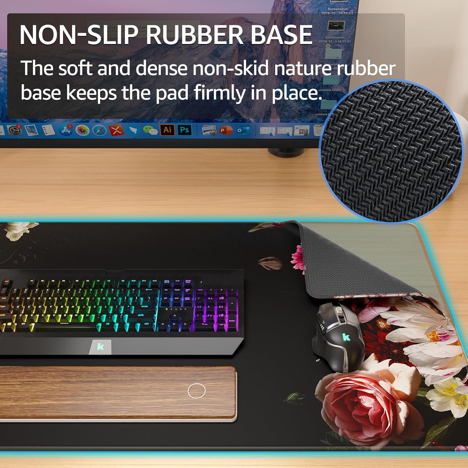 - Non-slip Rubber Base: The soft and dense non-skid nature rubber base keeps this desk pad firmly in place. This large mouse mat remains uniformly flat even over imperfect surfaces. Just immerse into your work or games without worrying about the annoying mouse pad movement.