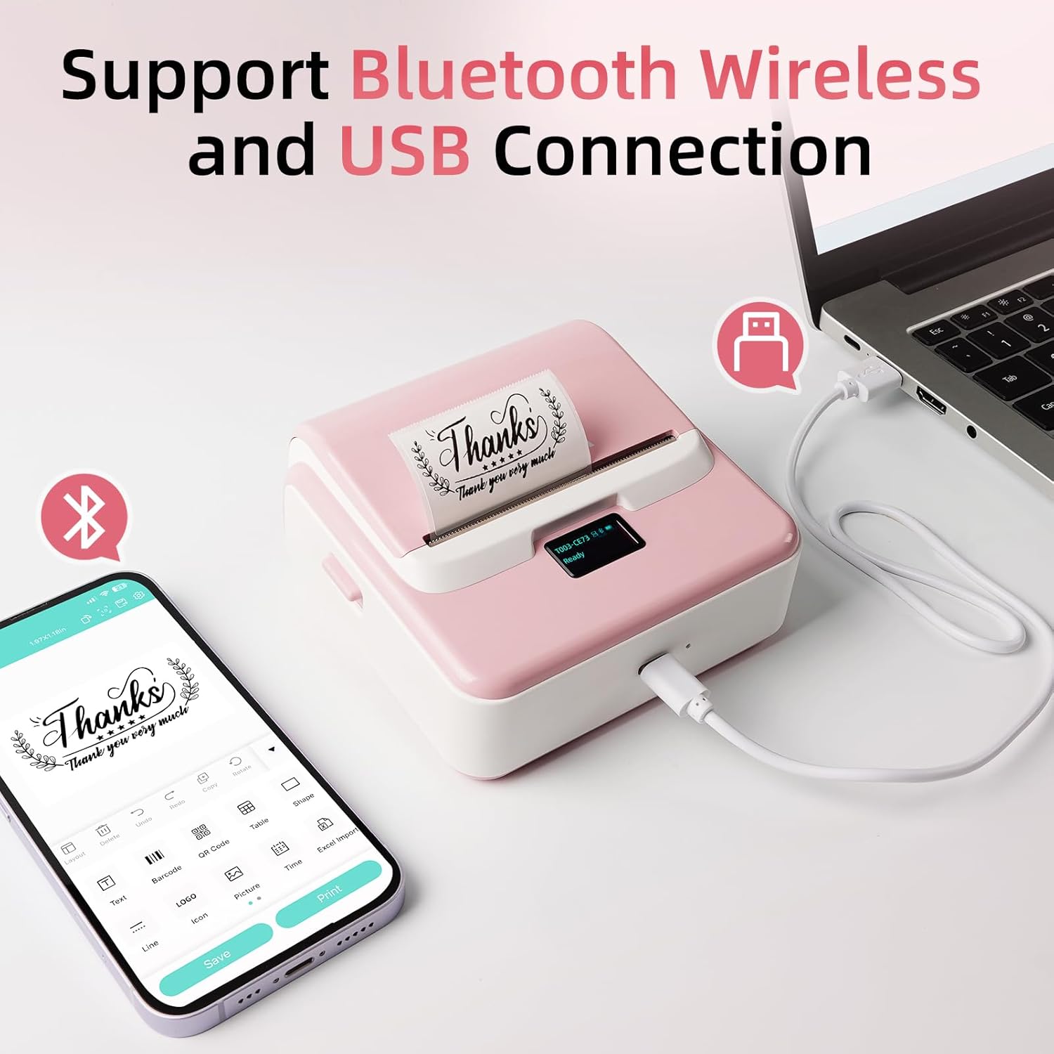 - Practical Screen Display: The T003 thermal printer with a LED screen enhances your printing experience with convenience and fun; It provides a clear view of the battery level, Bluetooth connection status, and printing status at a glance. Additionally, it allows you to select label types, set sleep timers, and schedule automatic shutdowns for optimal usability; For optimal performance, we recommend charging the printer before first use