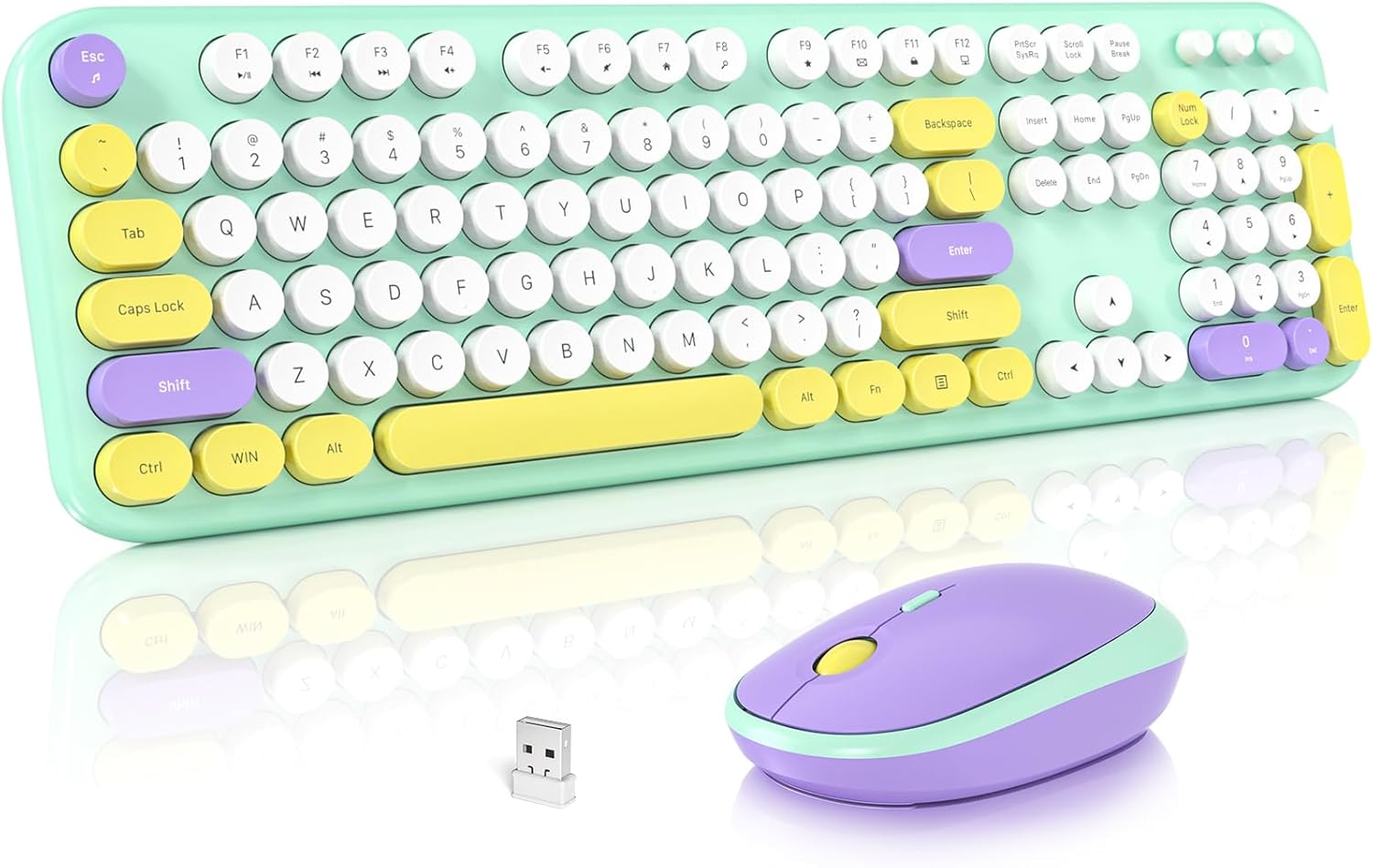 - Auto Sleep Mode: Our cute colorful keyboard and mouse wireless combos both require only 1 AA battery. Wireless keyboard and mouse automatically enter sleep mode after 5 minutes of inactivity, efficiently saving battery life and reducing the need for frequent replacements.